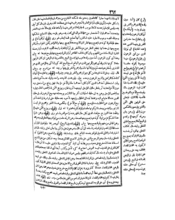 (قَوْلُهُ أَوْ كَانَ أَمَةً) فِي جَعْلِهِ غَايَةً لِقَوْلِهِ كَوْنُهُ عَيْنًا يَصِحُّ بَيْعُهَا نَظَرٌ؛ لِأَنَّ الْأُمَّ وَحْدَهَا لَا يَصِحُّ بَيْعُهَا وَلَا الْوَلَدُ، وَيُمْكِنُ الْجَوَابُ بِأَنَّ الْأُمَّ يَصِحُّ بَيْعُهَا فِي حَدِّ ذَاتِهَا بِقَطْعِ النَّظَرِ عَنْ حُرْمَةِ التَّفْرِيقِ أَوْ أَنَّ الْغَايَةَ رَاجِعَةٌ لِلْمُقَيَّدِ لَا بِقَيْدِهِ أَوْ أَنَّ هَذَا إشَارَةٌ إلَى الِاسْتِثْنَاءِ مِنْ الْمَفْهُومِ، وَإِنْ كَانَ خِلَافَ الظَّاهِرِ أَوْ أَنَّ الْمُرَادَ يَصِحُّ بَيْعُهَا وَلَوْ مَعَ غَيْرِهَا. اهـ. ع ش وَهَذَا أَيْ: كَوْنُ الْمَرْهُونِ أَمَةً دُونَ وَلَدِهَا عَيْبٌ فِيهَا يَفْسَخُ الْبَيْعَ بِهِ الْمَشْرُوطُ فِيهِ الرَّهْنُ إنْ كَانَ الْمُرْتَهِنُ جَاهِلًا كَوْنُهَا ذَاتَ وَلَدٍ أَيْ: يَجُوزُ لِلْمُرْتَهِنِ الَّذِي هُوَ الْبَائِعُ فَسْخُ الْبَيْعِ الْمَذْكُورِ إذَا أَتَى بِهِ الرَّاهِنُ الَّذِي هُوَ الْمُشْتَرِي بِأَمَةٍ فَرَهَنَهَا عِنْدَهُ، ثُمَّ تَبَيَّنَ لَهُ أَنَّهَا ذَاتُ وَلَدٍ يَحْرُمُ التَّفْرِيقُ بَيْنَهَا وَبَيْنَهُ. اهـ مِنْ شَرْحِ م ر وَع ش قَالَ ق ل: وَمِثْلُ الْأَمَةِ غَيْرُهَا مِنْ كُلِّ حَيَوَانٍ يَحْرُمُ التَّفْرِيقُ بَيْنَهُ وَبَيْنَ وَلَدِهِ. (قَوْلُهُ وَيُبَاعَانِ مَعًا) أَيْ: إنْ كَانَا مِلْكًا لِلرَّاهِنِ، وَإِلَّا بِيعَ الْمَرْهُونُ وَحْدَهُ ح ل، وَلَوْ رُهِنَتْ الْأُمُّ عِنْدَ وَاحِدٍ وَالْوَلَدُ عِنْدَ آخَرَ، وَاخْتَلَفَ وَقْتُ اسْتِحْقَاقِ أَحَدِهِمَا الدَّيْنَ كَأَنْ كَانَ أَحَدُهُمَا حَالَّا، وَالْآخَرُ مُؤَجَّلًا فَهَلْ يُبَاعُ مَنْ اسْتَحَقَّ دَيْنَهُ دُونَ الْآخَرِ لِلْحَاجَةِ أَوْ يَنْتَظِرُ حُلُولَ الْمُؤَجَّلِ لِيَبِيعَهَا أَوْ يُبَاعَانِ وَيُوَزَّعُ الثَّمَنُ؟ . فَمَا يَخُصُّ الْحَالَّ يُوفِي بِهِ وَمَا يَخُصُّ الْمُؤَجَّلَ يُرْهَنُ بِهِ إلَى حُلُولِهِ احْتِمَالَاتٌ أَقْرَبُهَا الثَّالِثُ، وَيُوَجَّهُ بِأَنَّهُ عَهْدُ بَيْعِ الْمَرْهُونِ قَبْلَ حُلُولِ الدَّيْنِ عِنْدَ الِاحْتِيَاجِ إلَيْهِ، وَيُحْفَظُ ثَمَنُهُ إلَى الْحُلُولِ، وَلَمْ يُعْهَدْ تَأْخِيرُهُ بَعْدَ حُلُولِهِ حَتَّى لَوْ شُرِطَ فِي الْعَقْدِ تَأْخِيرُ بَيْعِ الْمَرْهُونِ عَنْ الْحُلُولِ بِمُدَّةٍ لَمْ يَصِحَّ (قَوْلُهُ ثُمَّ مَعَ الْآخَرِ) وَعَكْسُ هَذَا التَّقْوِيمِ صَحِيحٌ فَثُمَّ لَيْسَتْ لِلتَّرْتِيبِ، وَلَا بُدَّ مِنْ وَصْفِ الْأُمِّ بِكَوْنِهَا حَاضِنَةً، وَالْوَلَدُ بِكَوْنِهِ مَحْضُونًا. اهـ. ق ل.