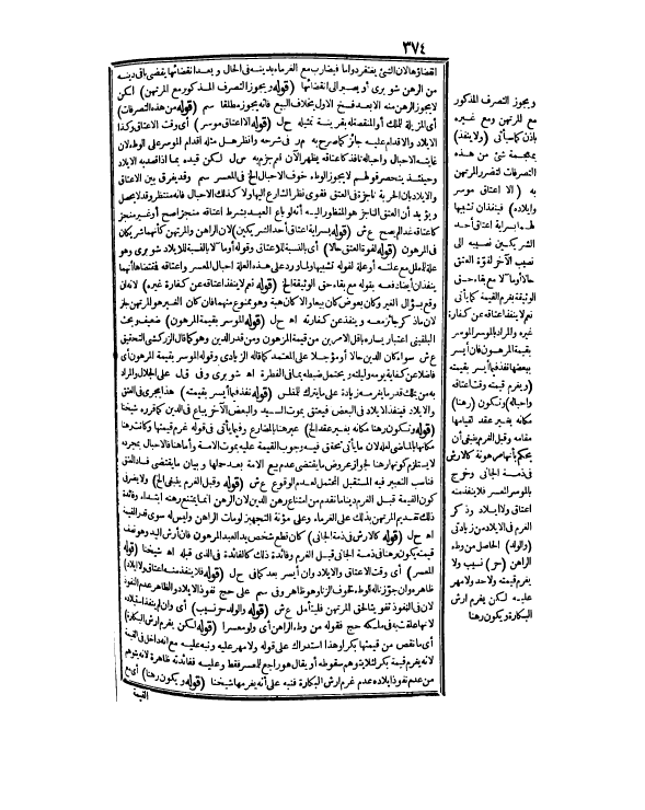 وَقَوْلُهُ أَوْ مَآلًا بِالنِّسْبَةِ لِلْإِيلَادِ. شَوْبَرِيٌّ، وَهُوَ عِلَّةٌ لِلْمُعَلَّلِ مَعَ عِلَّتِهِ أَوْ عِلَّةٌ لِقَوْلِهِ تَشْبِيهًا وَلِمَا وَرَدَ عَلَى هَذِهِ الْعِلَّةِ إحْبَالُ الْمُعْسِرِ وَإِعْتَاقُهُ، فَمُقْتَضَاهَا أَنَّهُمَا يَنْفُذَانِ أَيْضًا دَفَعَهُ بِقَوْلِهِ مَعَ بَقَاءِ حَقِّ الْوَثِيقَةِ إلَخْ. (قَوْلُهُ نَعَمْ لَا يَنْفُذُ إعْتَاقُهُ عَنْ كَفَّارَةِ غَيْرِهِ) لِأَنَّهُ إنْ وَقَعَ بِسُؤَالِ الْغَيْرِ وَكَانَ بِعِوَضٍ كَانَ بَيْعًا، وَإِلَّا كَانَ هِبَةً وَهُوَ مَمْنُوعٌ مِنْهُمَا فَإِنْ كَانَ الْغَيْرُ هُوَ الْمُرْتَهِنَ جَازَ لِأَنَّ مَا ذُكِرَ جَائِزٌ مَعَهُ، وَيَنْفُذُ عَنْ كَفَّارَتِهِ. اهـ. ح ل.