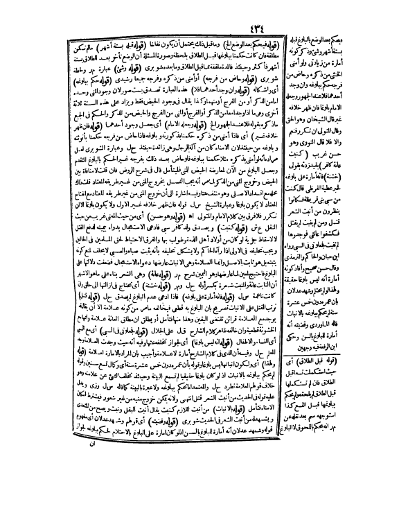 (قَوْلُهُ: حُكِمَ بِبُلُوغِهِ) أَيْ وَإِشْكَالِهِ (قَوْلُهُ: وَإِنْ وُجِدَ أَحَدُهُمَا فَلَا) هَذِهِ الْعِبَارَةُ تَصْدُقُ بِسِتِّ صُوَرٍ؛ لِأَنَّ وُجُودَ الْمَنِيِّ وَحْدَهُ إمَّا مِنْ الذَّكَرِ أَوْ مِنْ الْفَرْجِ أَوْ مِنْهُمَا وَكَذَا يُقَالُ فِي وُجُودِ الْحَيْضِ فَقَطْ وَيُزَادُ عَلَى هَذِهِ السِّتَّةِ ثَلَاثَةٌ أُخْرَى، وَهِيَ مَا إذَا وُجِدَا مَعًا مِنْ الذَّكَرِ أَوْ الْفَرْجِ أَوْ الْمَنِيُّ مِنْ الْفَرْجِ وَالْحَيْضُ مِنْ الذَّكَرِ وَالْحُكْمُ فِي الْجَمِيعِ مَا ذَكَرَهُ بِقَوْلِهِ فَلَا عِنْدَ الْجُمْهُورِ إلَخْ (قَوْلُهُ: وَجَعَلَهُ الْإِمَامُ) أَيْ جَعَلَ وُجُودَ أَحَدِهِمَا (قَوْلُهُ: فَإِنْ ظَهَرَ خِلَافُهُ غُيِّرَ) أَيْ فَإِذَا أَمْنَى مِنْ ذَكَرِهِ حَكَمْنَا بِذُكُورَتِهِ وَبُلُوغِهِ فَإِذَا حَاضَ مِنْ فَرْجِهِ حَكَمْنَا بِأُنُوثَتِهِ وَبُلُوغِهِ مِنْ حِينَئِذٍ؛ لِأَنَّ الْإِمْنَاءَ كَانَ مِنْ آلَةِ الرِّجَالِ وَهِيَ زَائِدَةٌ حِينَئِذٍ ح ل.