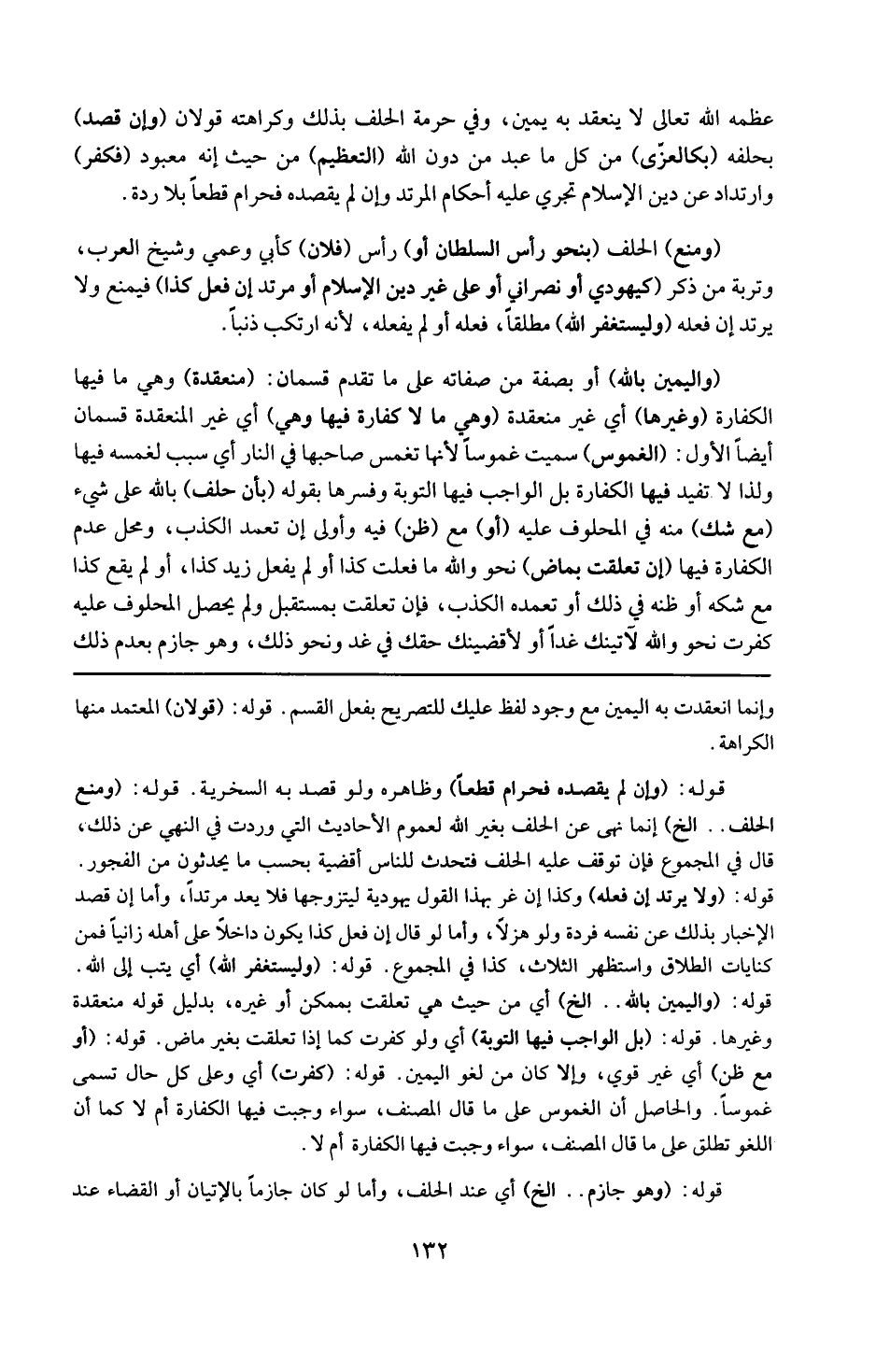 قوله : 16 ( واليمين بالله ) إلخ : أي من حيث هي تعلقت بممكن أو غيره بدليل قوله : منعقدة وغيرها .