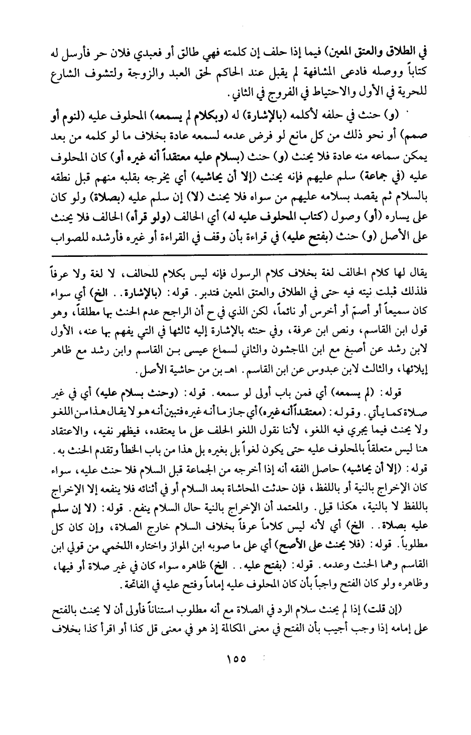 قوله : 16 ( بفتح عليه ) إلخ : ظاهره سواء كان في غير صلاة أو فيها وظاهره ولو كان الفتح واجبا بأن كان المحلوف عليه إماما وفتح عليه في الفاتحة . إن قلت : إذا لم يحنث بسلام الرد في الصلاة مع أنه مطلوب استنانا فأولي أن لا يحنث بالفتح على إمامه إذا وجب ؟ أجيب : بأن الفتح في معنى المكالمة إذ هو في معنى : قل كذا أو اقرأ كذا بخلاف