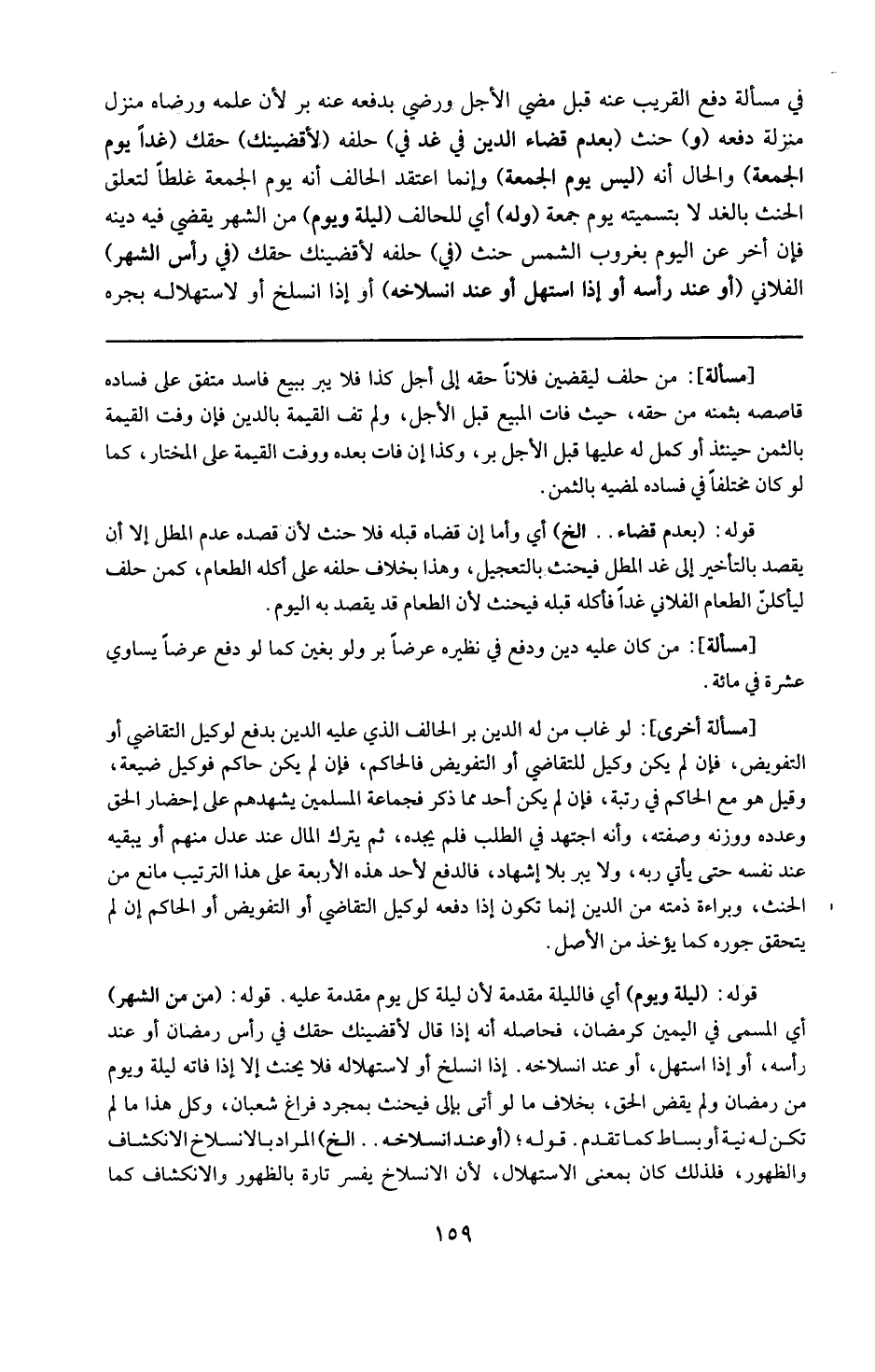 قوله : 16 ( من الشهر ) : أي المسمى في اليمين كرمضان . فحاصله أنه إذا قال : لأقضينك حقك في رأس رمضان أو عند رأسه أو إذا استهل أو عند انسلاخه أو إذا انسلخ أو لاستهلاله فلا يحنث إلا إذا فاته ليلة ويوم من رمضان ولم يقض الحق بخلاف ما لو أتى بإلي فيحنث بمجرد فراغ شعبان وكل هذا ما لم تكن له نية أو بساط كما تقدم .