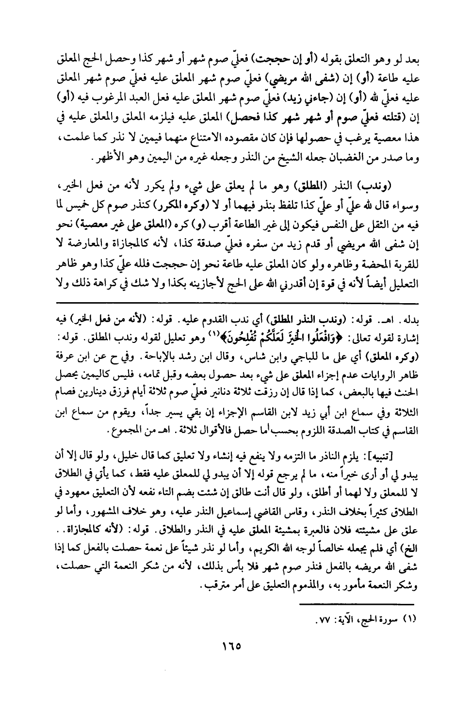 قوله : 16 ( وندب النذر المطلق ) : أي ندب القدوم عليه .