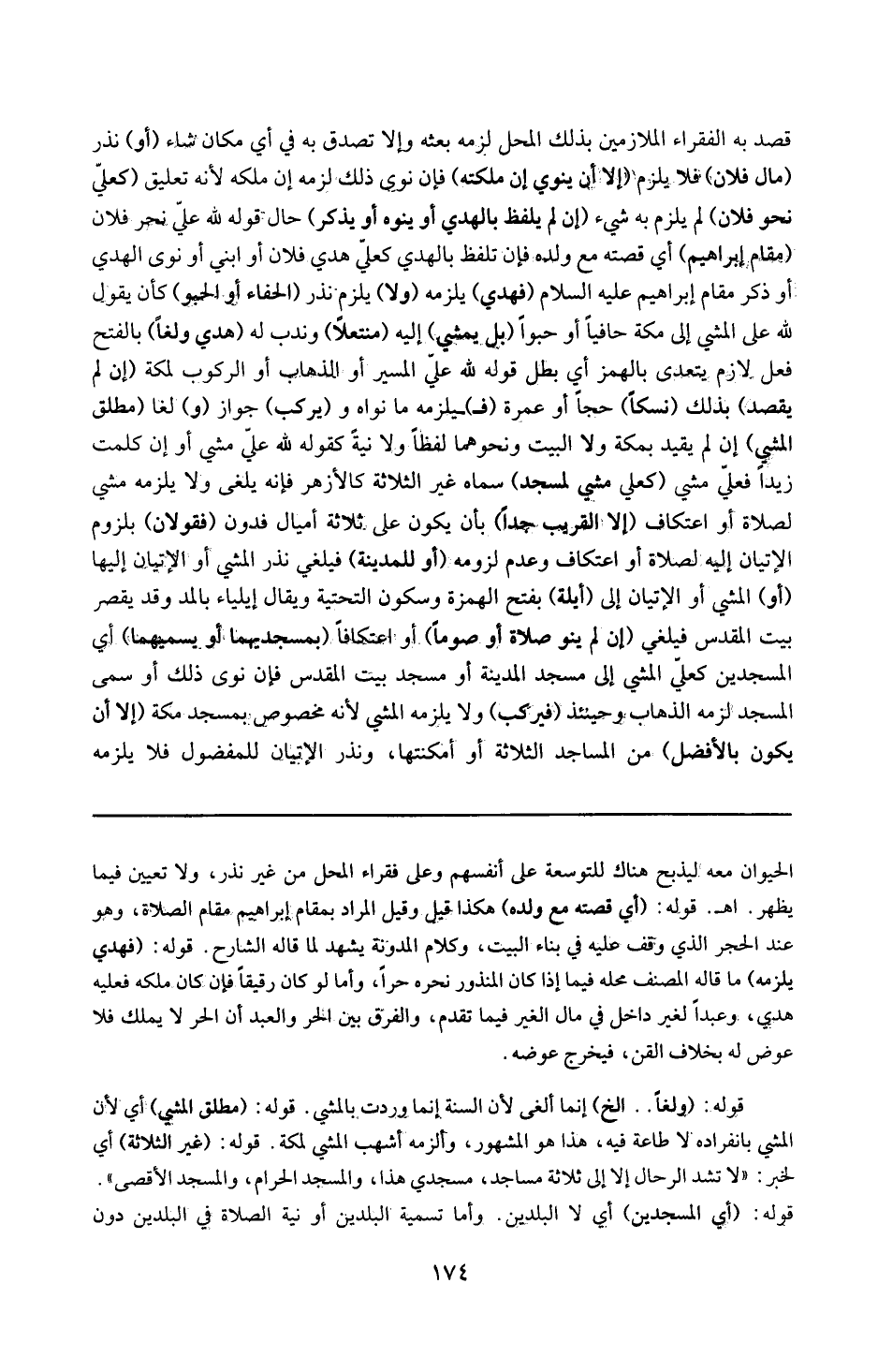 قوله : 16 ( فهدي يلزمه ) : ما قاله المصنف محله فيما إذا كان المنذور نحره حرا وأما لو كان رقيقا فإن كان ملكه فعليه هدي وعبد الغير داخل في مال الغير فيما تقدم والفرق بين الحر والعبد أن الحر لا يملك فلا عوض له بخلاف القن فيخرج عوضه .