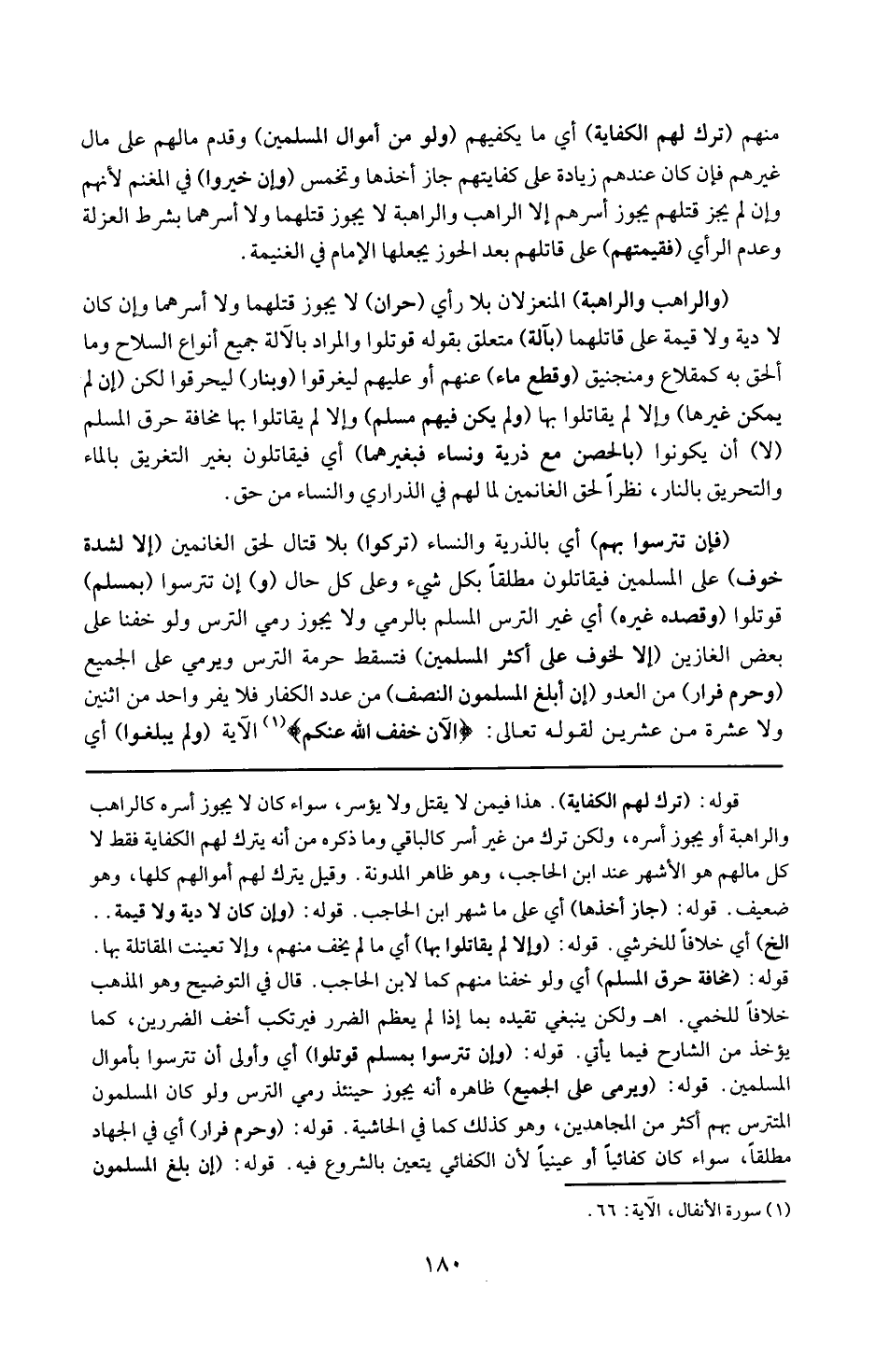 قوله : 16 ( ترك لهم الكفاية ) : هذا فيمن لا يقتل ولا يؤسر سواء كان لا يجوز أسره كالراهب والراهبة أو يجوز أسره ولكن ترك من غير أسر كالباقي وما ذكره من أنه يترك لهم الكفاية فقط لا كل ما لهم هو الأشهر عند ابن الحاجب وهو ظاهر المدونة وقيل يترك لهم أموالهم كلها وهو ضعيف .