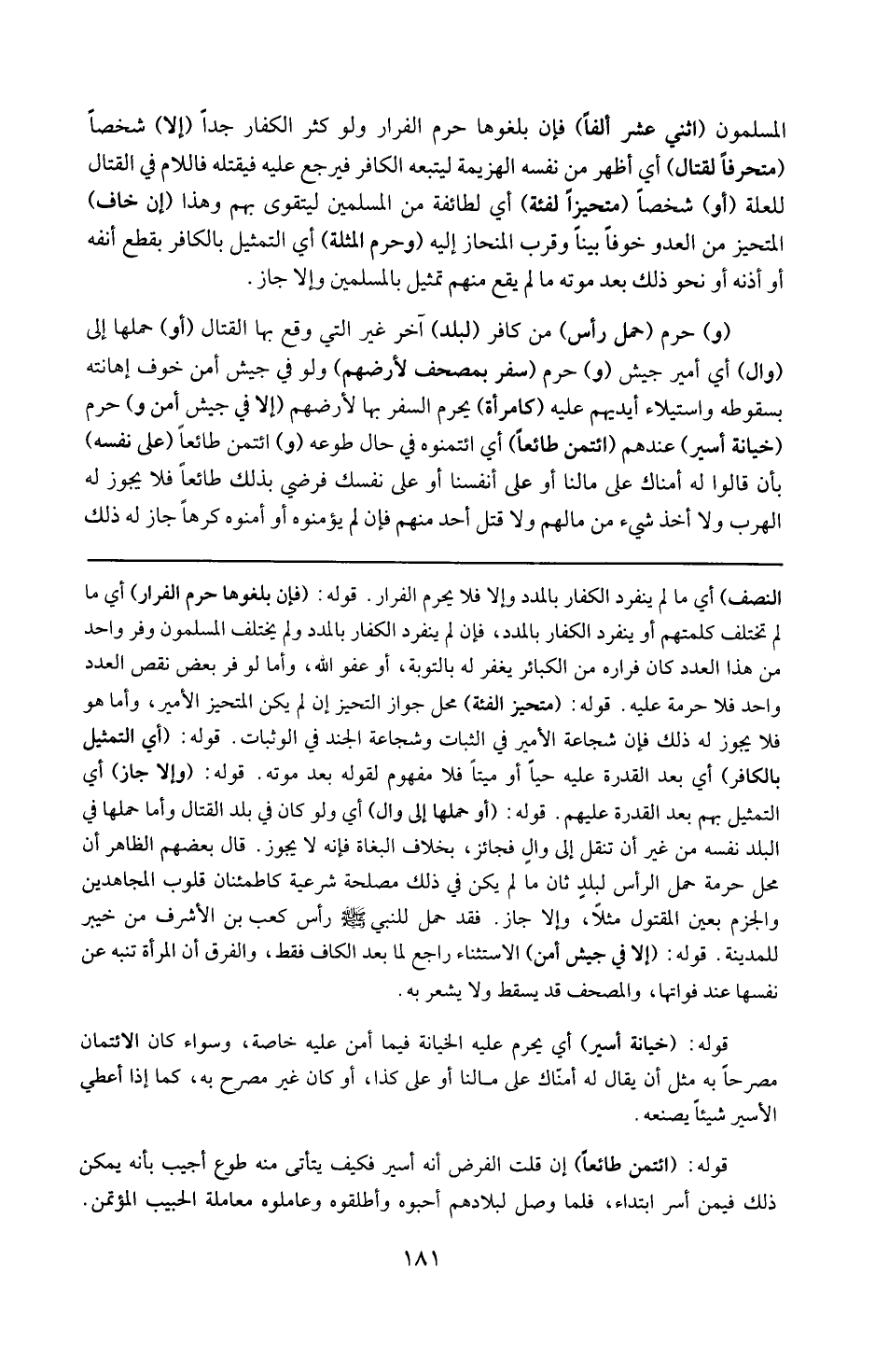 قوله : 16 ( متحيزا لفئة ) : محل جواز التحيز إن لم يكن المتحيز الأمير وأما هو فلا يجوز له ذلك فإن شجاعة الأمير في الثبات . وشجاعة الجند في الوثبات .