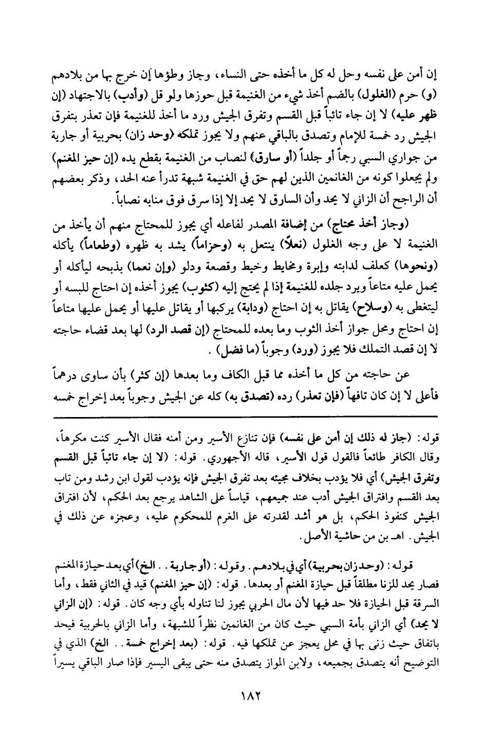 وقوله : 16 ( أو جارية ) إلخ : أي بعد حيازة المغنم فصار يحد للزنا مطلقا قبل حيازة المغنم أو بعدها .