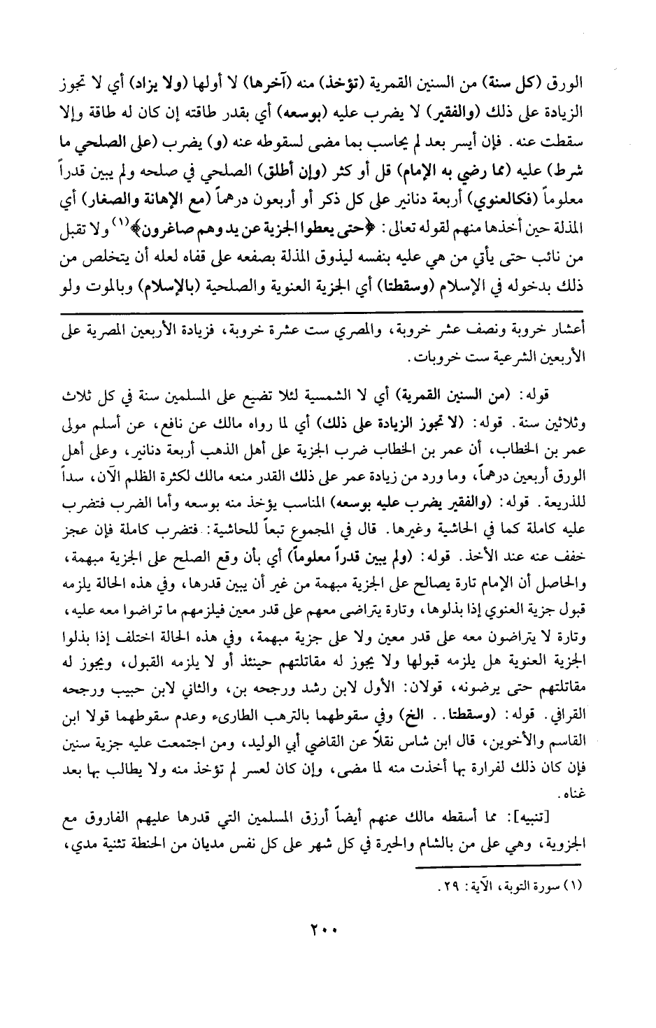 قوله : 16 ( لا تجوز الزيادة على ذلك ) : أي لما رواه مالك عن نافع عن أسلم مولي عمر بن الخطاب : أن عمر بن الخطاب ضرب الجزية على أهل الذهب أربعة دنانير وعلى أهل الورق أربعين درهما وما ورد من زيادة عمر على ذلك القدر منعه مالك لكثرة الظلم الآن سدا للذريعة .
