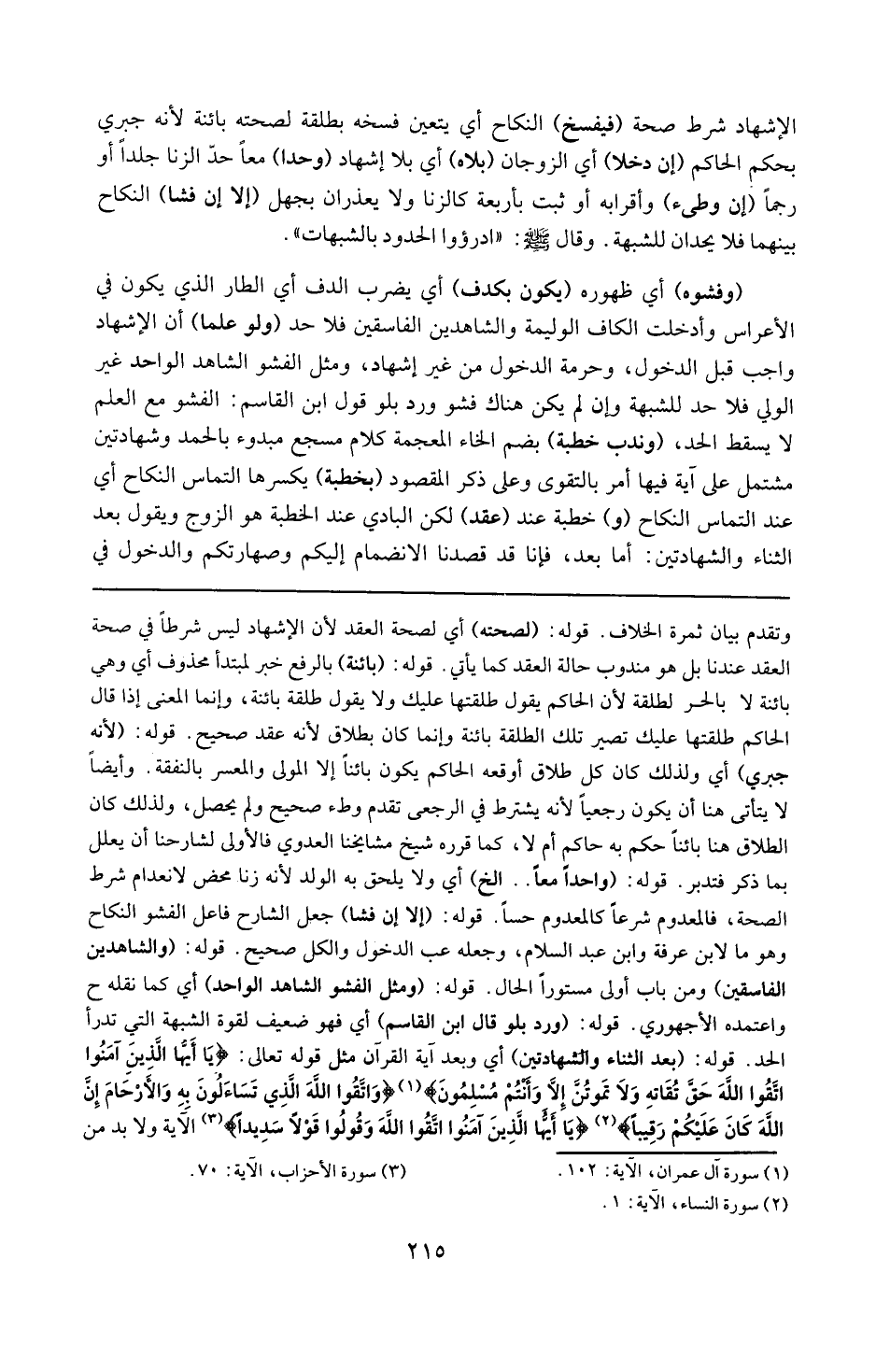 قوله : 16 ( إلا إن فشا ) : جعل الشارح فاعل الفشو النكاح وهو ما لابن عرفه وابن عبدالسلام وجعله ( عب ) الدخول والكل صحيح .