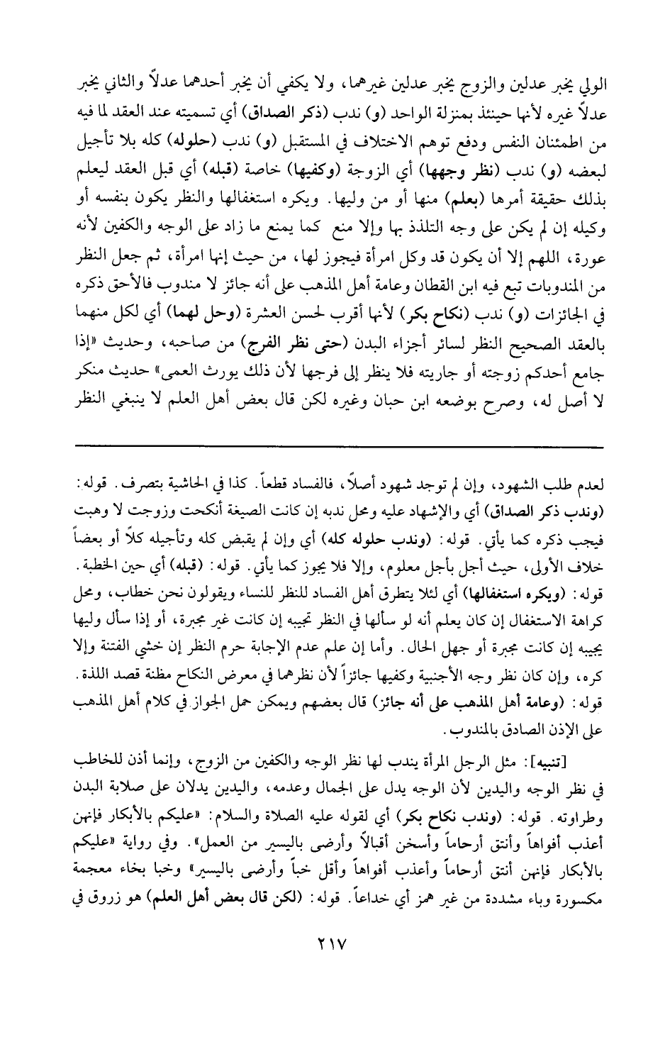 تنبيه : مثل الرجل المرأة يندب لها نظر الوجه والكفين من الزوج وإنما أذن للخاطب في نظر الوجه واليدين لأن الوجه يدل على الجمال وعدمه . واليدين تدلان على صلابة البدن وطراوته .