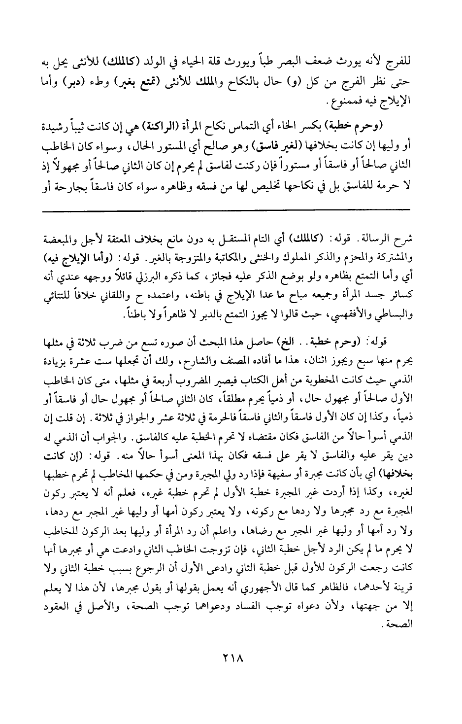 قوله : 16 ( وحرم خطبة ) إلخ : حاصل هذا المبحث أن صوره تسع من ضرب ثلاثة في مثلها يحرم منها سبع ويجوز اثنان . هذا ما أفاده المصنف والشارح ولك أن تجعلها ستة عشر بزيادة الذمى حيث كانت المخطوبة من أهل الكتاب فيصير المضروب أربعة في مثلها متى كان الخاطب الأول صالحا أو مجهول حال أو ذميا يحرم مطلقا كان الثاني صالحا أو مجهول حال أو فاسقا أو ذميا . وكذا إن كان الأول فاسقا والثاني فاسقا فالحرمة في ثلاثة عشر والجواز في ثلاثة . إن قلت أن الذمي أسوأ حالا من الفاسق فكان مقتضاه لا تحرم الخطبة عليه كالفاسق . والجواب أن الذمي له دين يقر عليه . والفاسق لا يقر على فسقه فكان بهذا المعنى أسوأ حالا منه .
