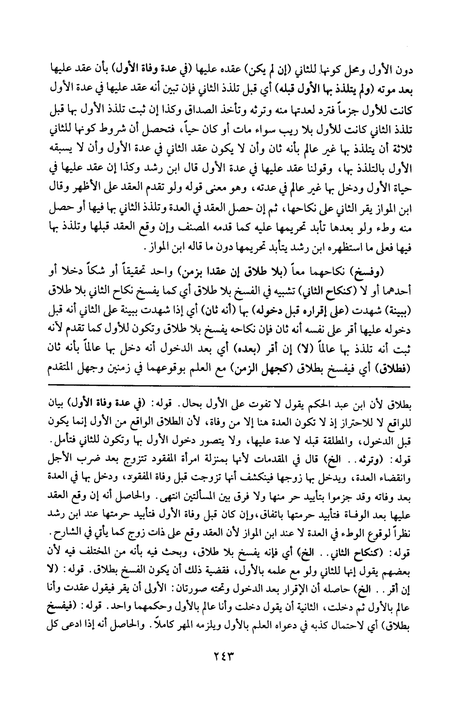 قوله : 16 ( فيفسخ بطلاق ) : أي لاحتمال كذبه في دعواه العلم بالأول ويلزمه المهر كاملا .
