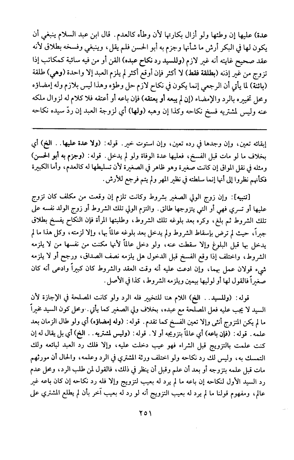 تنبيه : وإن زوج الولي الصغير بشروط وكانت تلزم إن وقعت من مكلف كأن تزوج عليها أو تسرى فهي أو التي يتزوجها طالق والتزم الولي تلك الشروط أو زوج الولد نفسه على تلك الشروط ثم بلغ وكره بعد بلوغه تلك الشروط وطلبتها المرأة فإن النكاح يفسخ بطلاق جبرا حيث لم ترض بإسقاط الشروط ولم يدخل بعد بلوغه عالما بها وإلا لزمته وكل هذا ما لم يدخل بها قبل البلوغ وإلا سقطت عنه ولو دخل عالما لأنها مكنت من نفسها من لا يلزمه الشروط .