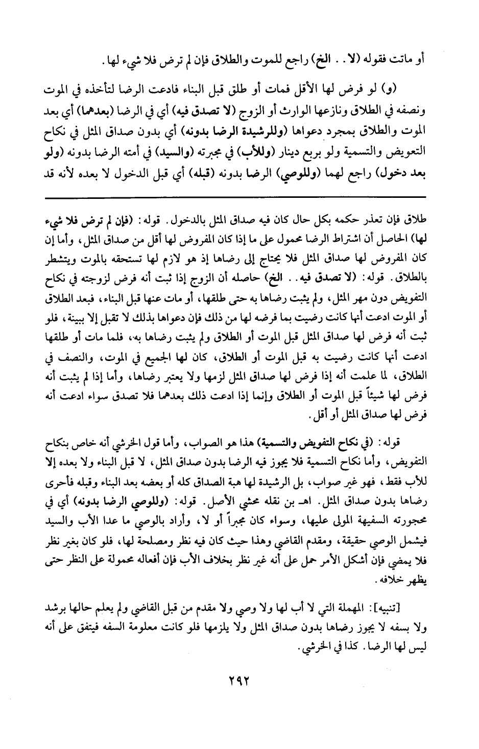 تنبيه : المهملة التي لا أب لها ولا وصى ولا مقدم من قبل القاضي ولم يعلم حالها برشد ولا بسفه لا يجوز رضاها بدون صداق المثل ولا يلزمها فلو كانت معلومة السفه فيتفق على أنه ليس لها الرضا كذا في الخرشي .