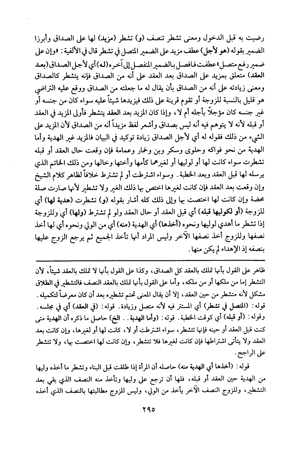 قوله : 16 ( وأما الهدية ) إلخ : حاصل ما ذكره أن الهدية متى كانت قبل العقد أو حينه فإنها تتشطر سواء اشترطت أو لا كانت لها أو لغيرها وإن كانت بعد العقد ولا يتأتي اشتراطها فإن كانت لغيرها فلا تتشطر وإن كانت لها أقتضت بها ولا تتشطر على الراجح .