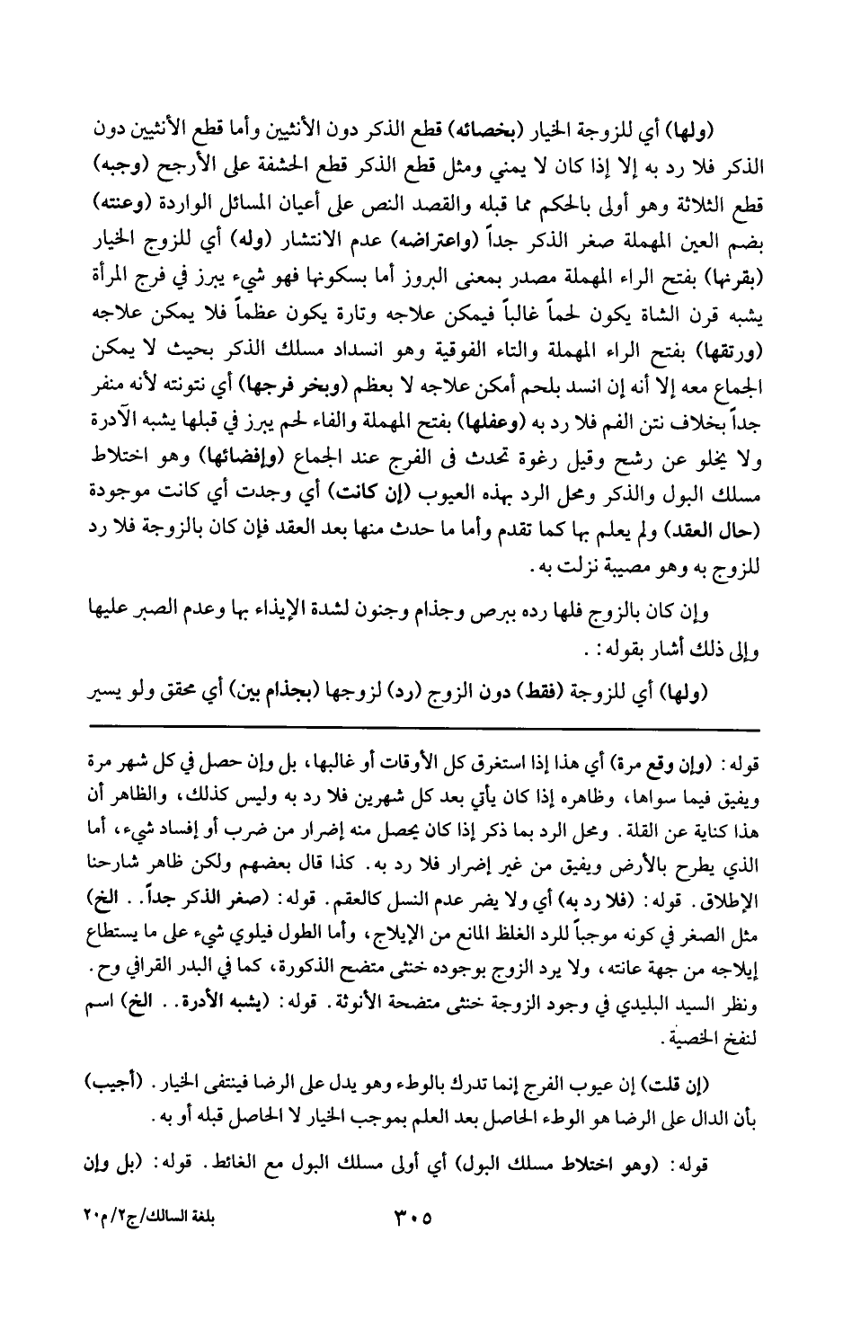 قوله : 16 ( يشبه الأدرة ) إلخ : اسم لنفخ الخصية . إن قلت إن عيوب الفرج إنما تدرك بالوطء وهو يدل على الرضا فينتفى الخيار . أجيب بأن الدال على الرضا هو الوطء الحاصل بعد العلم بموجب الخيار لا الحاصل قبله أو به .