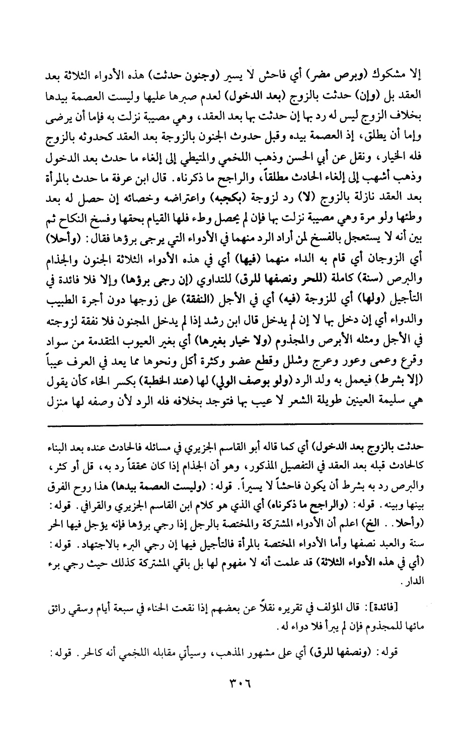 قوله : 16 ( وأجلا ) إلخ : أعلم أن الأدواء المشتركة والمختصة بالرجل إذا رجى برؤها فإنه يؤجل فيها الحر سنة والعبد نصفها وأما الأدواء المختصة بالمرأة فالتأجيل فيها إن رجى البرء بالاجتهاد .