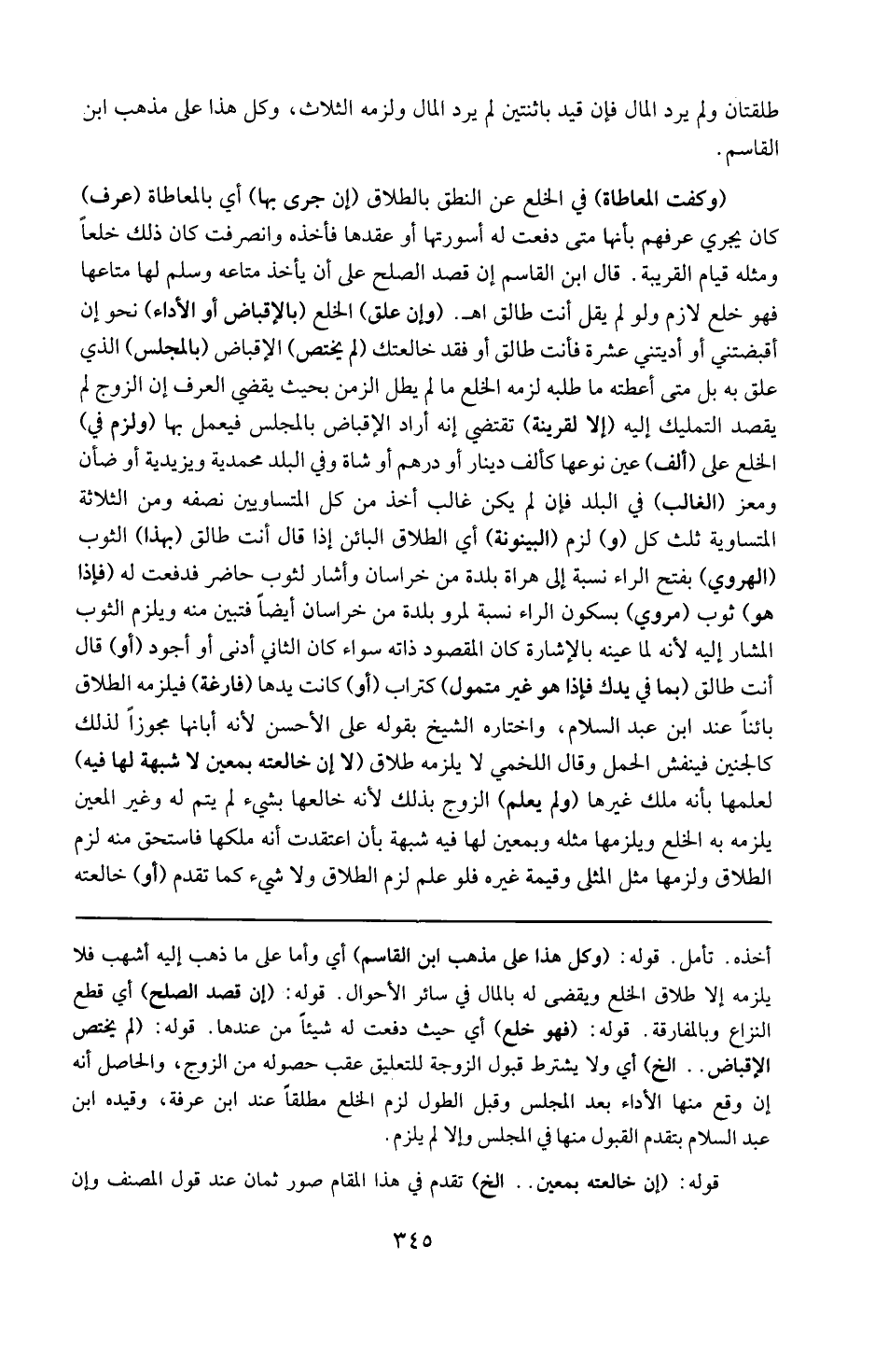 قوله : 16 ( وكل هذا على مذهب ابن القاسم ) : أي وأما على ما ذهب إليه أشهب فلا يلزمه إلا طلاق الخلع ويقضي له بالمال في سائر الأحوال .