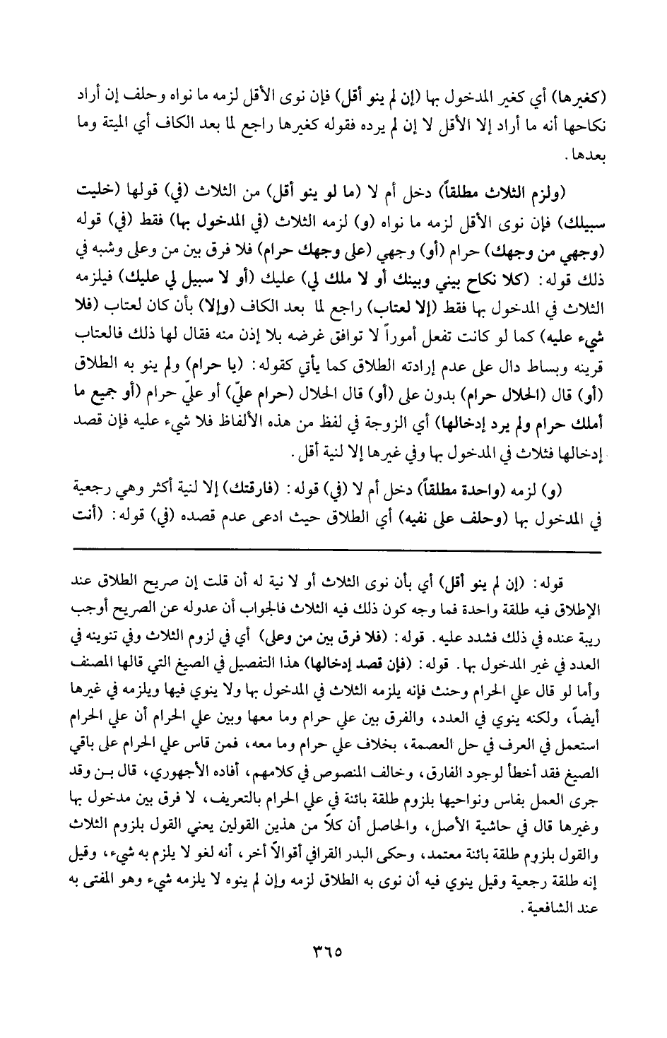 قوله : 16 ( إن لم ينو أقل ) : أي بأن نوى الثلاث أو لا نية له . إن قلت إن صريح الطلاق عند الإطلاق فيه طلقة واحدة فما وجه كون ذلك فيه الثلاث ؟ فالجواب أن عدوله عن الصريح أوجب ريبة عنده في ذلك فشدد عليه .