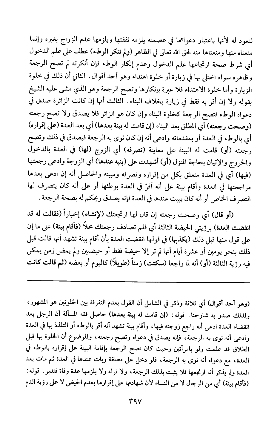 قوله : 16 ( إن قامت له بينة بعدها ) حاصل فقه المسألة أن الرجل بعد انقضاء العدة ادعى أنه راجع زوجته فيها وأقام بينة تشهد أنه أقر بالوطء أو التلذذ بها في العدة وادعى أنه نوى به الرجعة فإنه يصدق في دعواه وتصح رجعته والموضوع أن الخلوة بها قبل الطلاق قد علمت ولو بامرأتين وحيث كان تصح الرجعة بإقامة البينة على إقراره بالوطء في العدة مع دعواه أنه نوى به الرجعة فلو دخل على مطلقة وبات عندها في العدة ثم مات بعد العدة ولم يذكر أنه ارتجعها فلا تثبت بذلك الرجعة ولا ترثه ولا يلزمها عدة وفاة فتدبر .