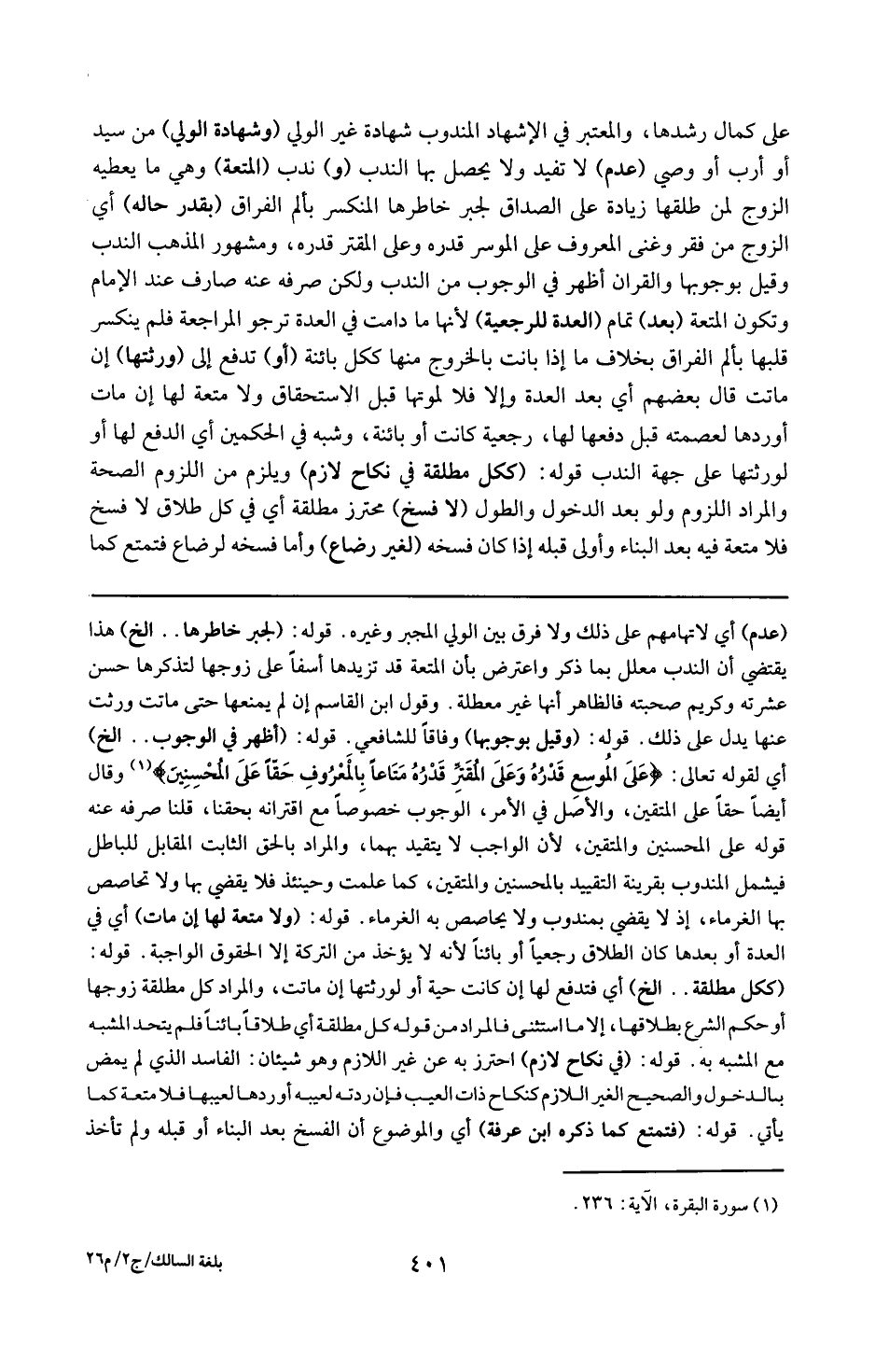 قوله : 16 ( ككل مطلقة ) إلخ : أى فتدفع لها إن كانت حية أو لورثتها إن ماتت والمراد كل مطلقة طلقها زوجها أو حكم الشرع بطلاقها إلا ما استثنى فالمراد من قوله كل مطلقة أى طلاقا بائنا فلم يتحد المشبه مع المشبه به .