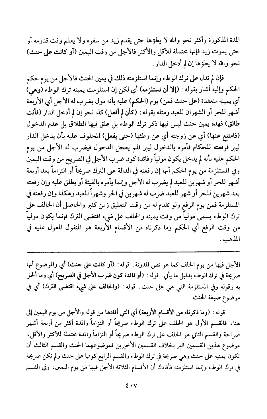 قوله : 16 ( وما ذكرناه من الأقسام الأربعة ) : أي التي أفادها من قوله والأجل من يوم اليمين إلى هنا فالقسم الأول : هو الحلف على ترك الوطء صريحا أو التزاما والمدة أكثر من أربعة أشهر صراحة . والقسم الثاني : هو الحلف على ترك الوطء صريحا أو التزاما والمدة محتملة للأكثر والأقل موضوع هذين القسمين البر بخلاف الأخيرين فموضوعهما الحنث . والقسم الثالث : أن تكون يمينه على حنث وهي صريحة في ترك الوطء . والقسم الرابع وكونها على حنث ولم تكن صريحة في ترك الوطء وإنما استلزمته فأفادك أن الأقسام الثلاثة الأجل فيها من يوم اليمين وفي القسم