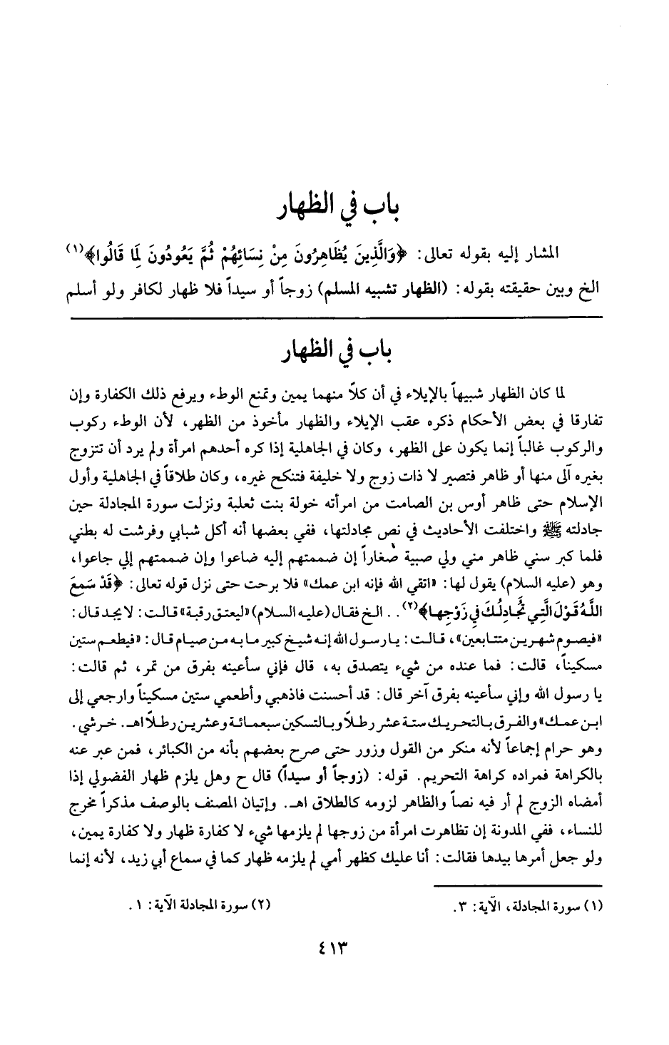 لما كان الظهار شبيها بالإيلاء في أن كلا منهما يمين تمنع الوطء ويرفع ذلك الكفارة وإن تفارقا في بعض الأحكام ذكره عقب الإيلاء والظهار مأخوذ من الظهر لأن الوطء : ركوب والركوب غالبا إنما يكون على الظهر وكان في الجاهلية إذا كره أحدهم امرأة ولم يرد أن تتزوج بغيره آلى منها أو ظاهر فتصير لا ذات زوج ولا خلية فتنكح غيره وكان طلاقا في الجاهلية وأول الإسلام حتى ظاهر أوس ابن الصامت من امرأته خولة بنت ثعلبة ونزلت سورة المجادلة حين جادلته صلى الله عليه وسلم واختلفت الأحاديث في نص مجادلتها ففي بعضها : إنه أكل شبابي وفرشت له بطنى فلما كبر سنى ظاهر منى ولى صبية صغار إن ضممتهم إليه ضاعوا وإن ضممتهم إلي جاعوا وهو عليه الصلاة والسلام يقول لها : اتقي الله فإنه ابن عمك ! فما برحت حتى نزل قوله تعالى : { قد سمع الله قول التي تجادلك في زوجها . . . إلخ } فقال عليه الصلاة والسلام : ليعتق رقبة قالت لا يجد قال : فيصوم شهرين متتابعين قالت : يا رسول الله إنه شيخ كبير ما به من صيام قال : فيطعم ستين مسكينا قالت : فما عنده من شيء يتصدق به قال : فإني سأعينه بفرق من تمر قالت يا رسول الله وإني سأعينه بفرق آخر قال : قد أحسنت فاذهبي وأطعمي ستين مسكينا وارجعي إلى ابن عمك والفرق بالتحريك ستة عشر رطلا وبالتسكين سبعمائة وعشرين رطلا ( اه ) . خرشى وهو حرام إجماعا لأنه منكر من القول وزور حتى صرح بعضهم بأنه من الكبائر فمن عبر عنه بالكراهة فمراده كراهة التحريم .