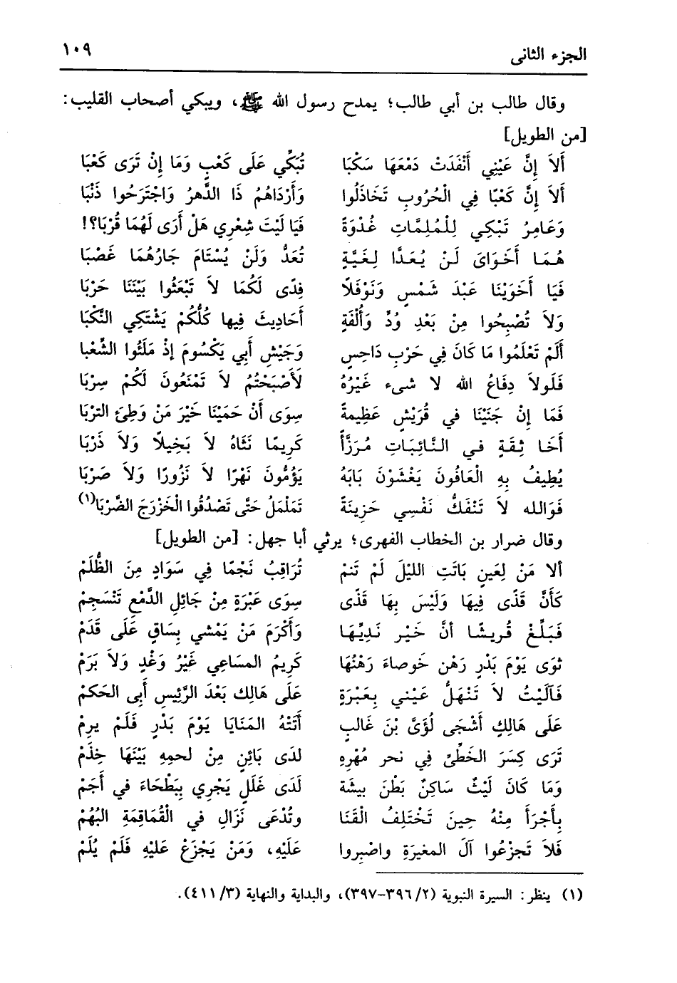 (أَلاَ إِنَّ عَيْنِي أَنْفّدَتْ دَمْعَهَا سَكْبَا ... تُبَكِّي عَلَى كَعْبٍ وَمَا إِنْ تَرَى كَعْبَا)
