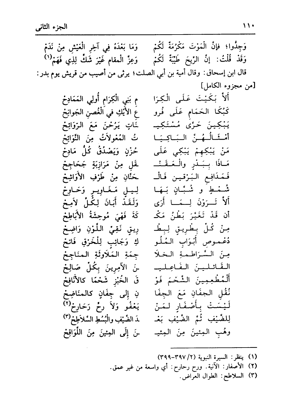 قَالَ ابْن إِسْحَاق وَقَالَ أُميَّة بن أبي الصَّلْت يرثي من أُصِيب من قُرَيْش يَوْم بدر // (من مجزوء الْكَامِل) //