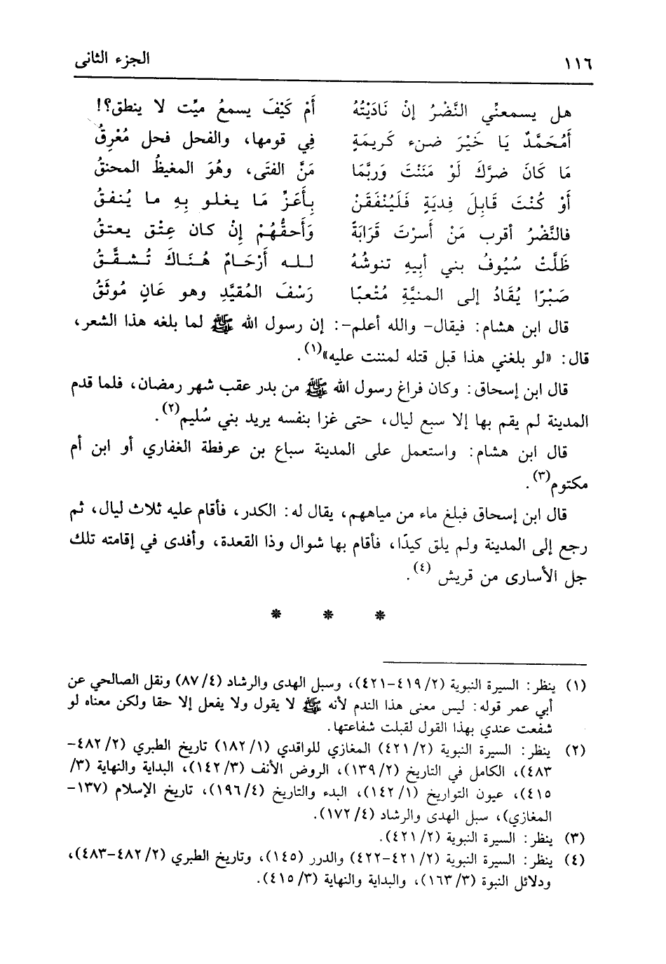 (هَل يسمعنِّي النَّضْرُ إِنْ نَادَيْتُهُ ... أَمْ كَيْفَ يسمعُ ميِّت لَا ينْطق؟)