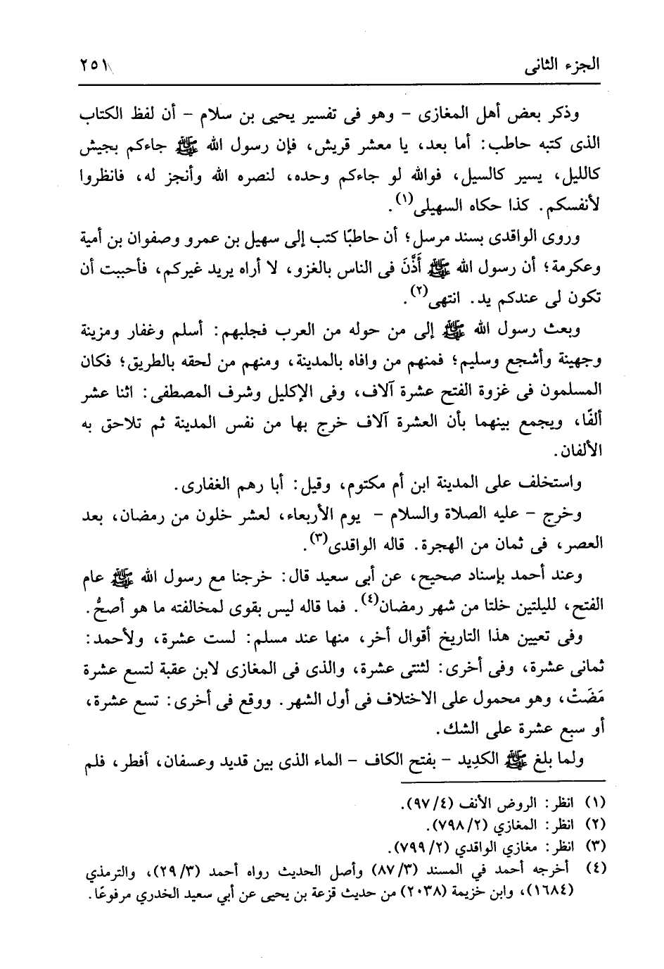 جَاءَكُم بِجَيْش كالليل يسير كالسيل فوَاللَّه لَو جَاءَكُم وَحده لنصره الله وأنجز لَهُ فانظروا لأنفسكم كَذَا حَكَاهُ السُّهيْلي وروى الْوَاقِدِيّ بِسَنَد مُرْسل أَن حاطبَاً كتب إِلَى سُهَيْل بن عَمْرو وَصَفوَان بن أُميَّة وَعِكْرِمَة أَن رَسُول الله