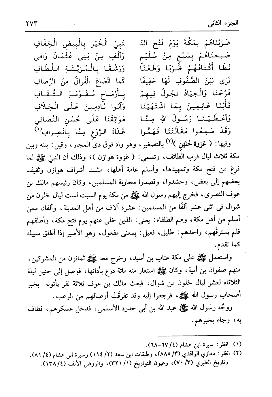 وفيهَا غَزْوَة حُنَين بِالتَّصْغِيرِ وَهُوَ وَاد فَوق ذِي الْمجَاز وَقيل بَينه وَبَين مَكَّة ثَلَاث لَيَال قرب الطَّائِف وَتسَمى غَزْوَة هوَازن وَذَلِكَ أَن النَّبِي