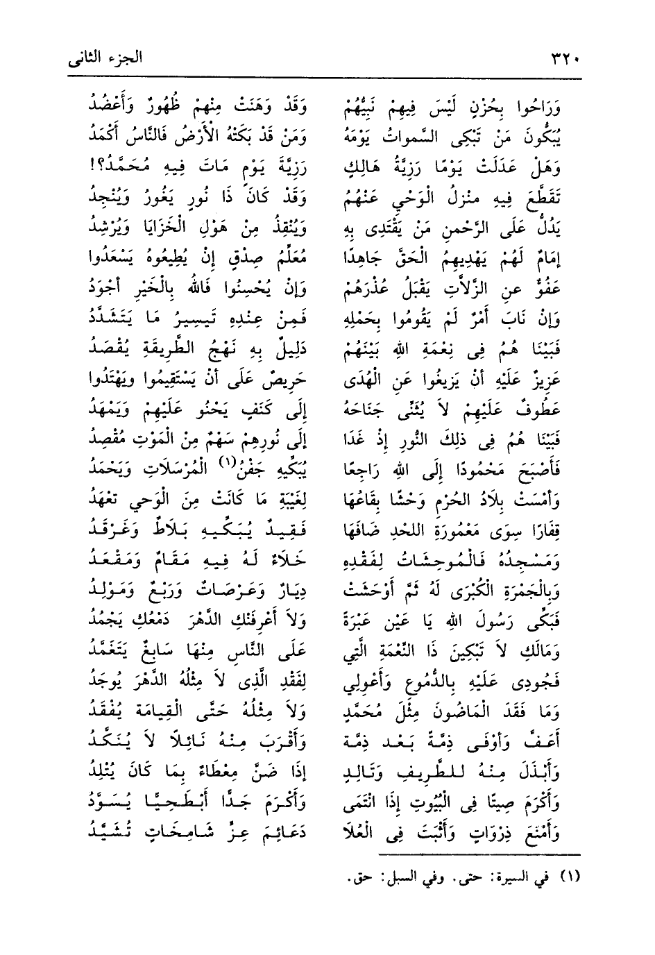 (فَبَكَّى رَسُولَ اللهِ يَا عَيْن عَبْرَةً ... وَلاَ أَعْرِفَنْكِ الدَّهْرِ دَمْعُكِ يَجْمُدُ)