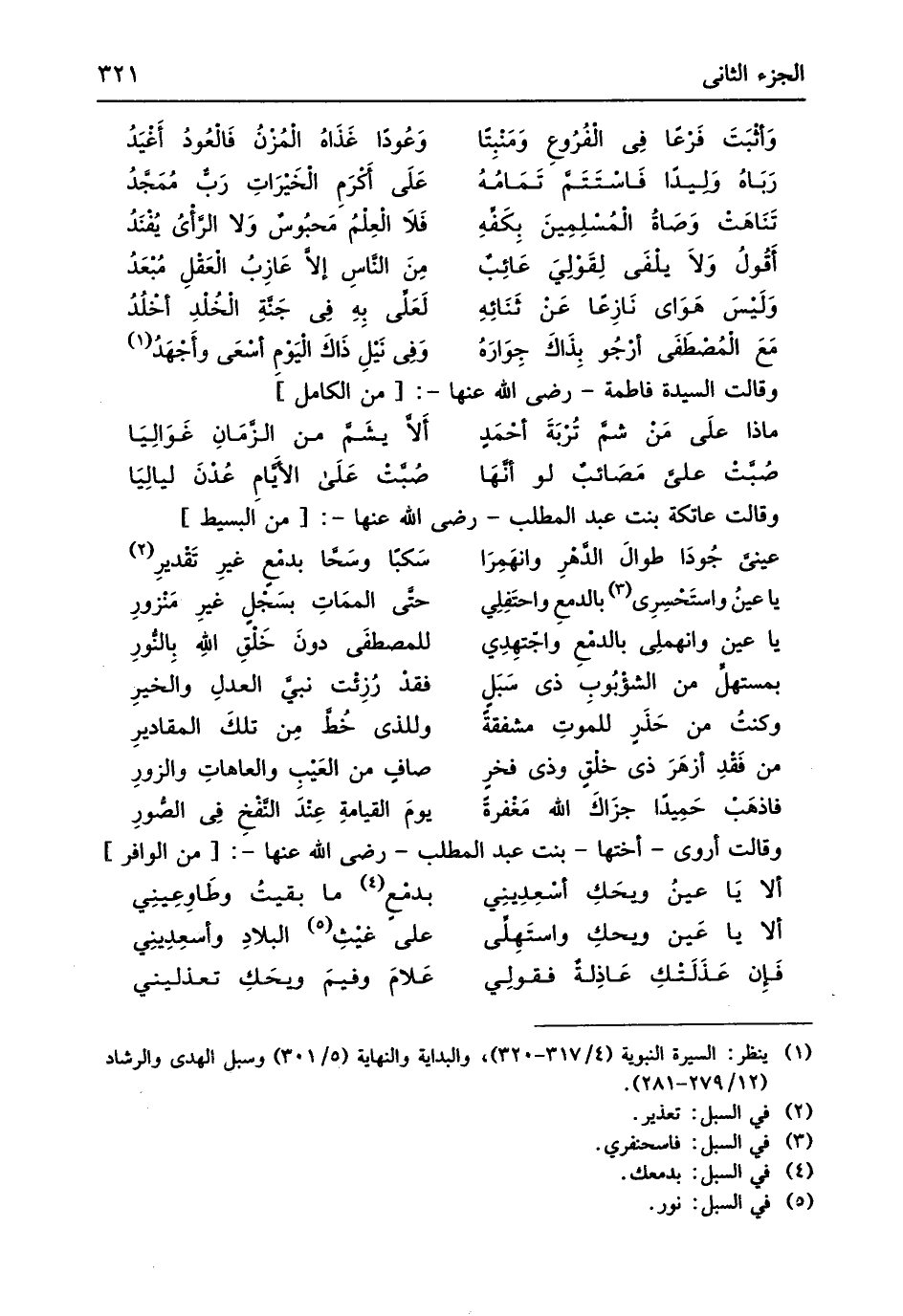 وَقَالَت أروى أُخْتهَا بنت عبد الْمطلب رَضِي الله عَنْهَا // (من الوافر) //