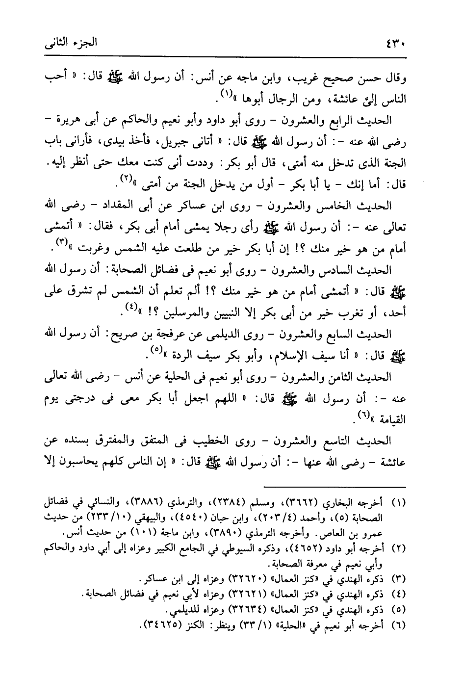 الحَدِيث السَّادِس وَالْعشْرُونَ روى أَبُو نعيم فِي فَضَائِل الصَّحَابَة أَن رَسُول الله