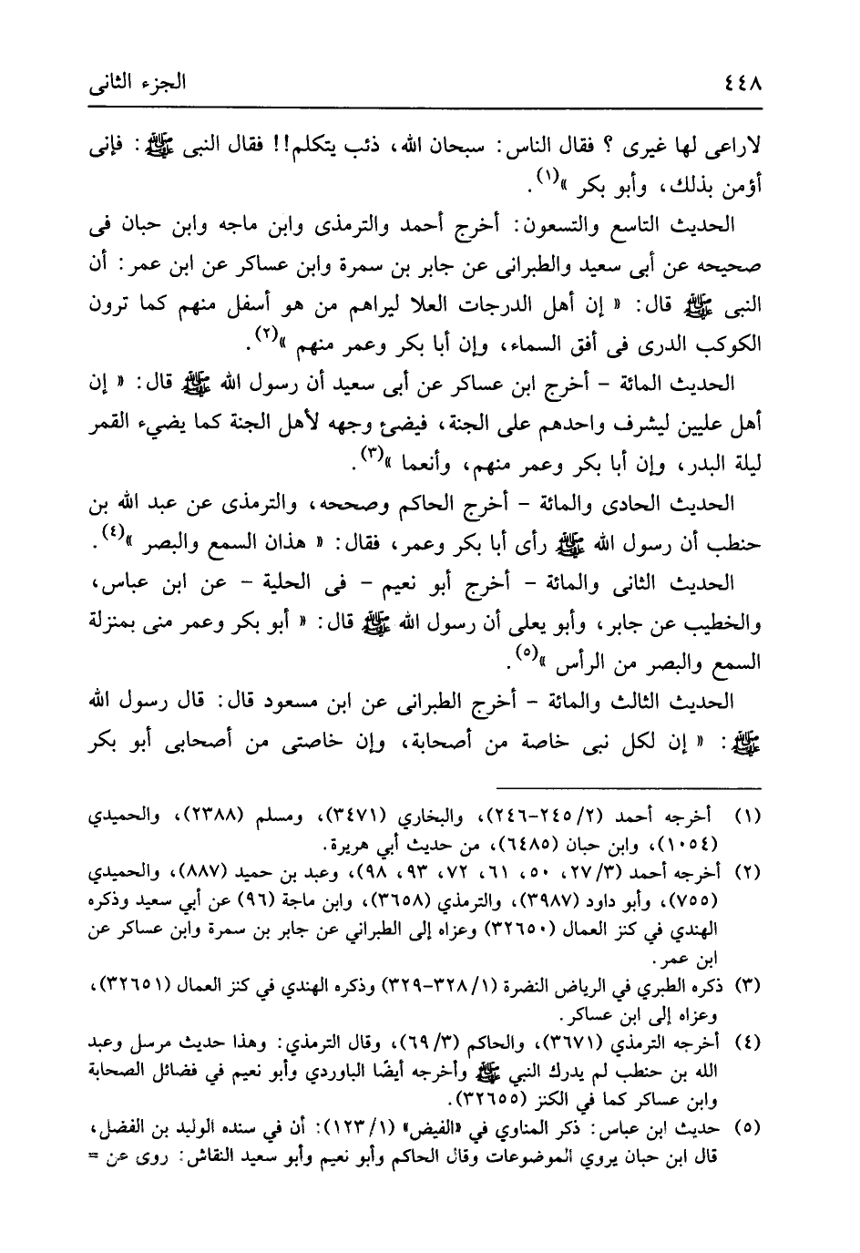 الحَدِيث التَّاسِع وَالتِّسْعُونَ أخرج أَحْمد وَالتِّرْمِذِيّ وَابْن مَاجَه وَابْن حبَان فِي صَحِيحه عَن أبي سعيد وَالطَّبَرَانِيّ عَن جَابر بن سَمُرَة وَابْن عَسَاكِر عَن ابْن عمر أَن النَّبِي
