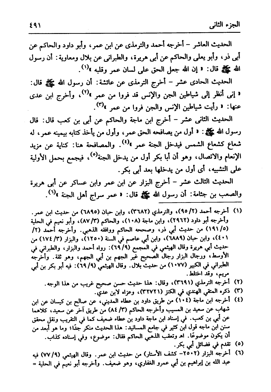 الحَدِيث الْعَاشِر أخرجه أَحْمد وَالتِّرْمِذِيّ عَن ابْن عمر وَأَبُو دَاوُد والحاكَم عَن أبي ذَر وَأَبُو يعلى وَالْحَاكِم عَن أبي هُرَيْرَة وَالطَّبَرَانِيّ عَن بِلَال وَمُعَاوِيَة أَن رَسُول الله