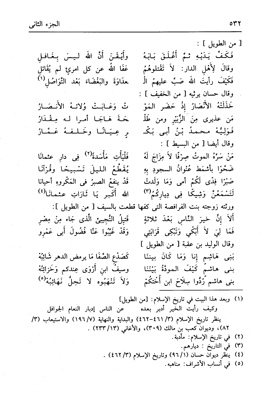 (فَكَيْفَ رأيتَ اللهَ صَبَّ عليهمُ الْعَدَاوَةَ ... والبَغْضَاءَ بَعْد التَّوَاصُلِ)