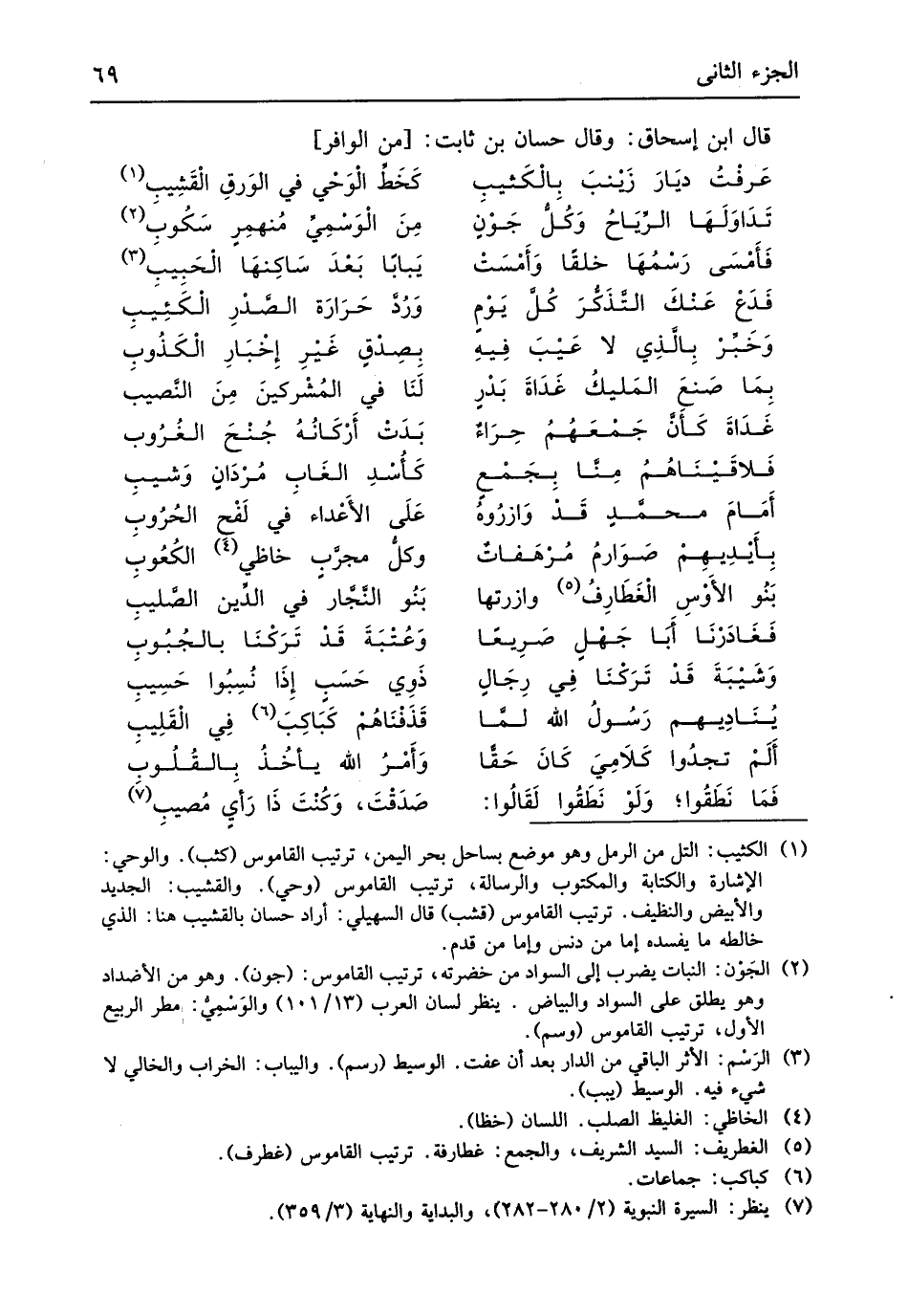 قَالَ ابْن إِسْحَاق وَقَالَ حسان بن ثَابت // (من الوافر) //