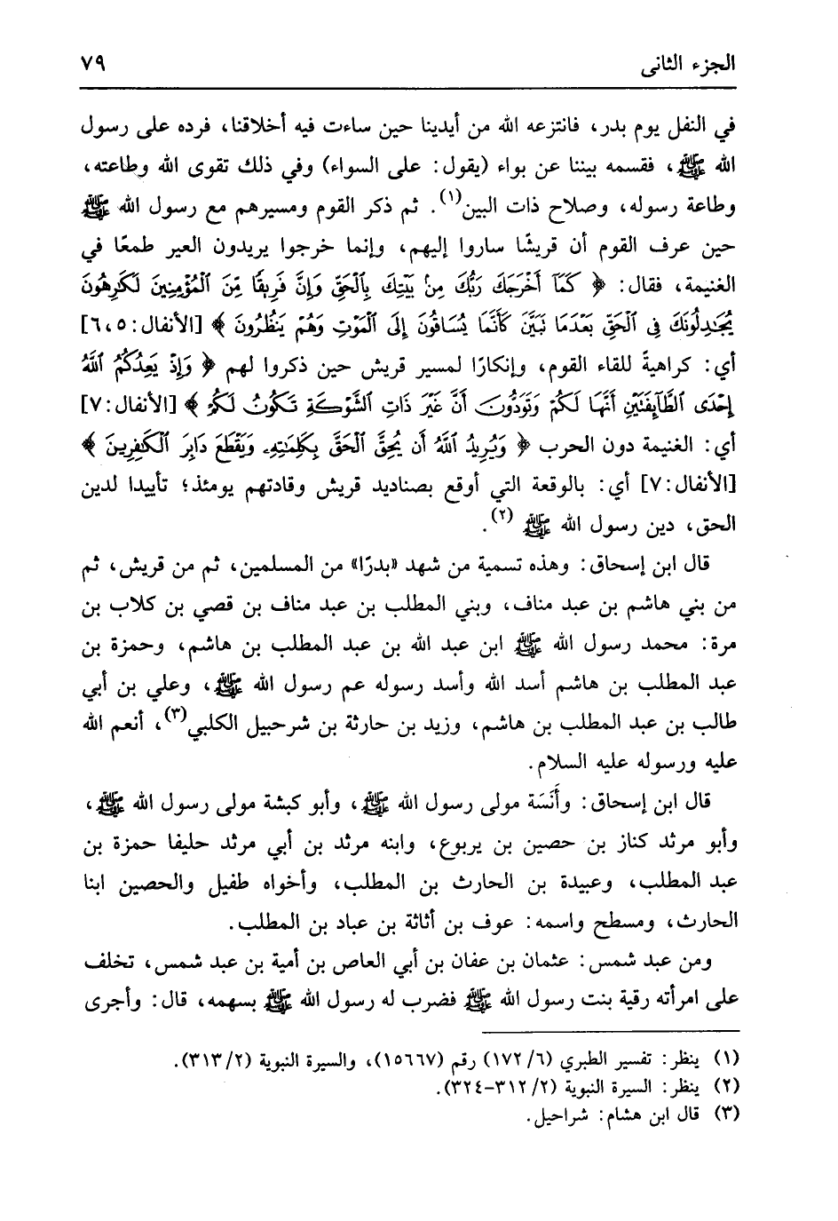 قَالَ ابْن إِسْحَاق وَهَذِه تَسْمِيَة من شهد بَدْرًا من الْمُسلمين ثمَّ قُرَيْش ثمَّ من بني هَاشم بن عبد منَاف وَبني الْمطلب بن عبد منَاف بن قصي بن كلاب بن مرّة مُحَمَّد رَسُول الله
