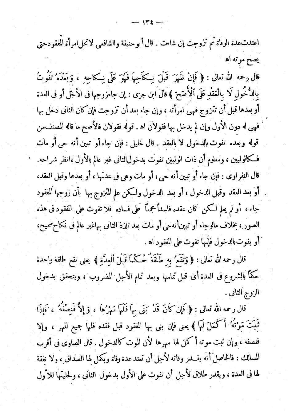 قال رحمه الله تعالى: " فإن كان قد بنى بها فلها مهرها، وإلا فنصفه، فإذا ثبت موته أكمل لها مهرها لأن الموت كالدخول. قال الصاوي في أقرب المسالك: فالحاصل أنه يقدر وفاته لأجل أن تعتد عدة وفاة ويكمل لها الصداق، ولا نفقة لها في العدة، ويقدر طلاق لأجل أن تفوت على الأول بدخول الثاني، ولحليتها للأول