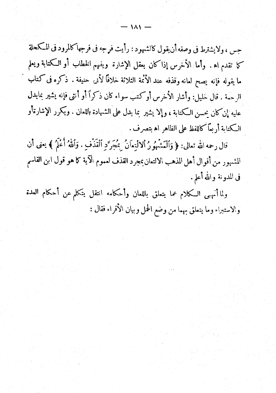 قال رحمه الله تعالى: " والمشهور الالتعان لمجرد القذف. والله أعلم " يعني أن المشهور من أقوال أهل المذهب الالتعان بمجرد القذف لعموم الآية كما هو قول ابن القاسم في المدونة والله أعلم.