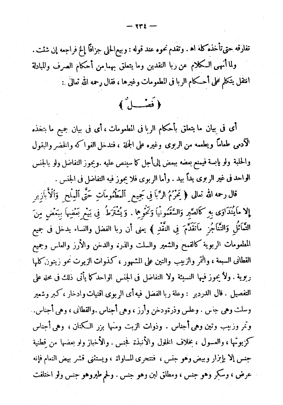 ولما أنهى الكلام على ربا النقدين وما يتعلق بهما من أحكام الصرف والمبادلة انتقل يتكلم على أحكام الربا في المطعومات وغيرها، فقال رحمه الله تعالى: