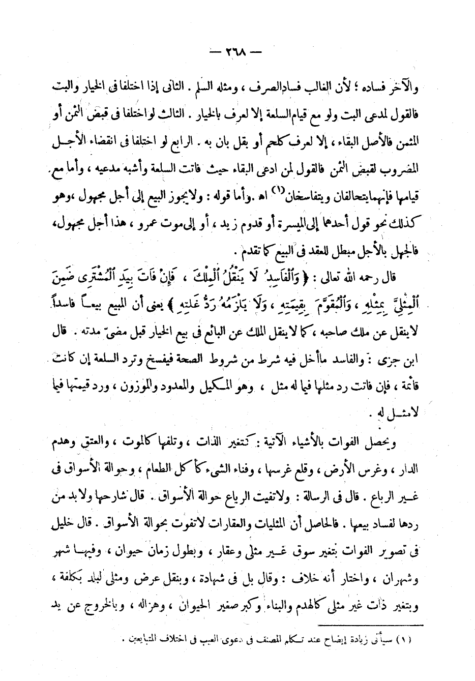 ويحصل الفوات بالأشياء الآتية: كتغير الذات، وتلفها كالموت، والعتق وهدم الدار، وغرس الأرض، وقلع غرسها، وفناء الشيء كأكل الطعام، وحوالة