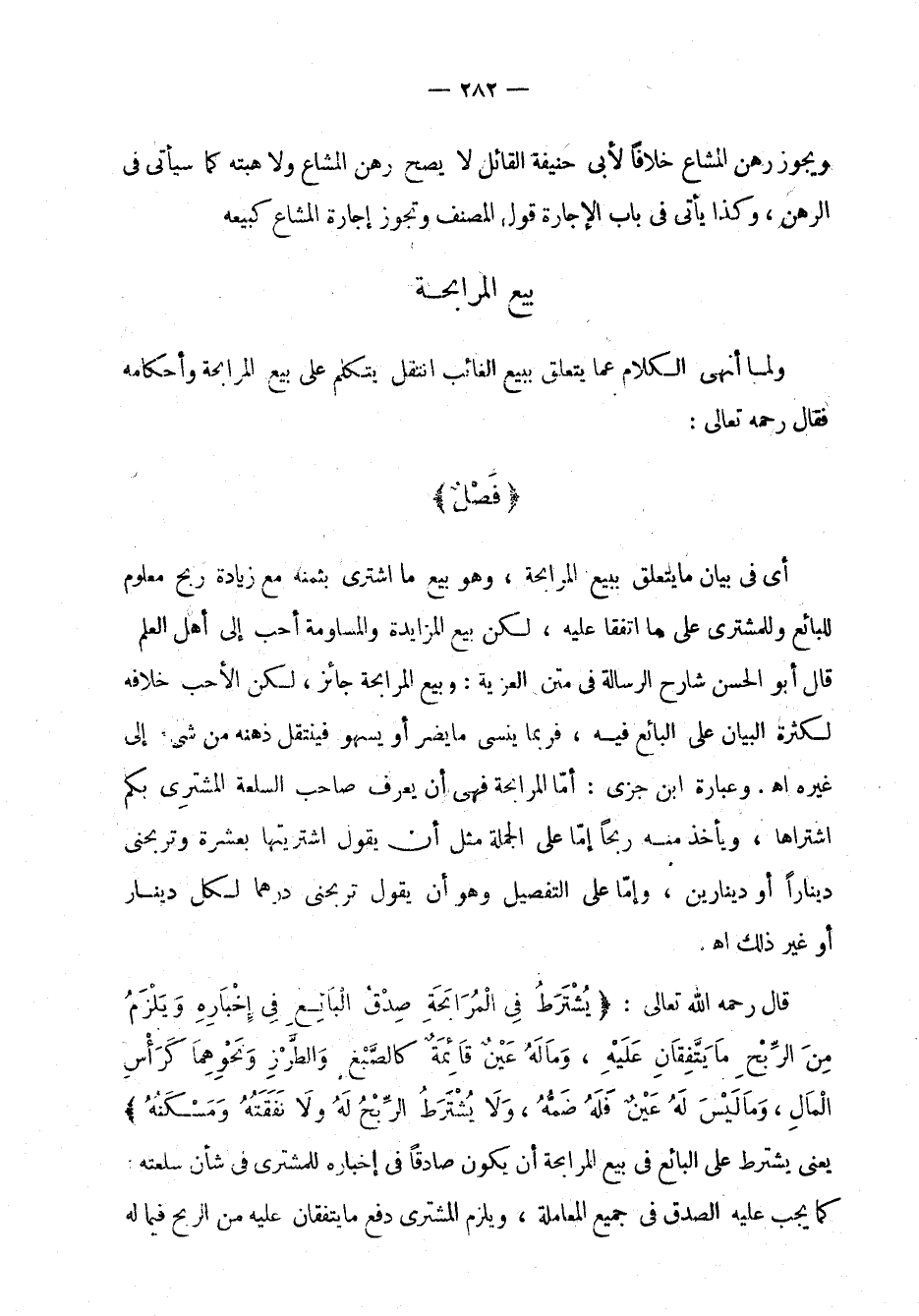 ولما أنهى الكلام على ما يتعلق ببيع الغائب انتقل يتكلم على بيع المرابحة وأحكامه فقال رحمه تعالى: