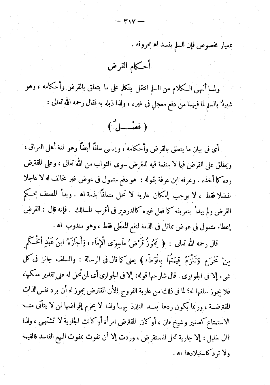 في بيان ما يتعلق بالقرض وهو بمعنى السلف