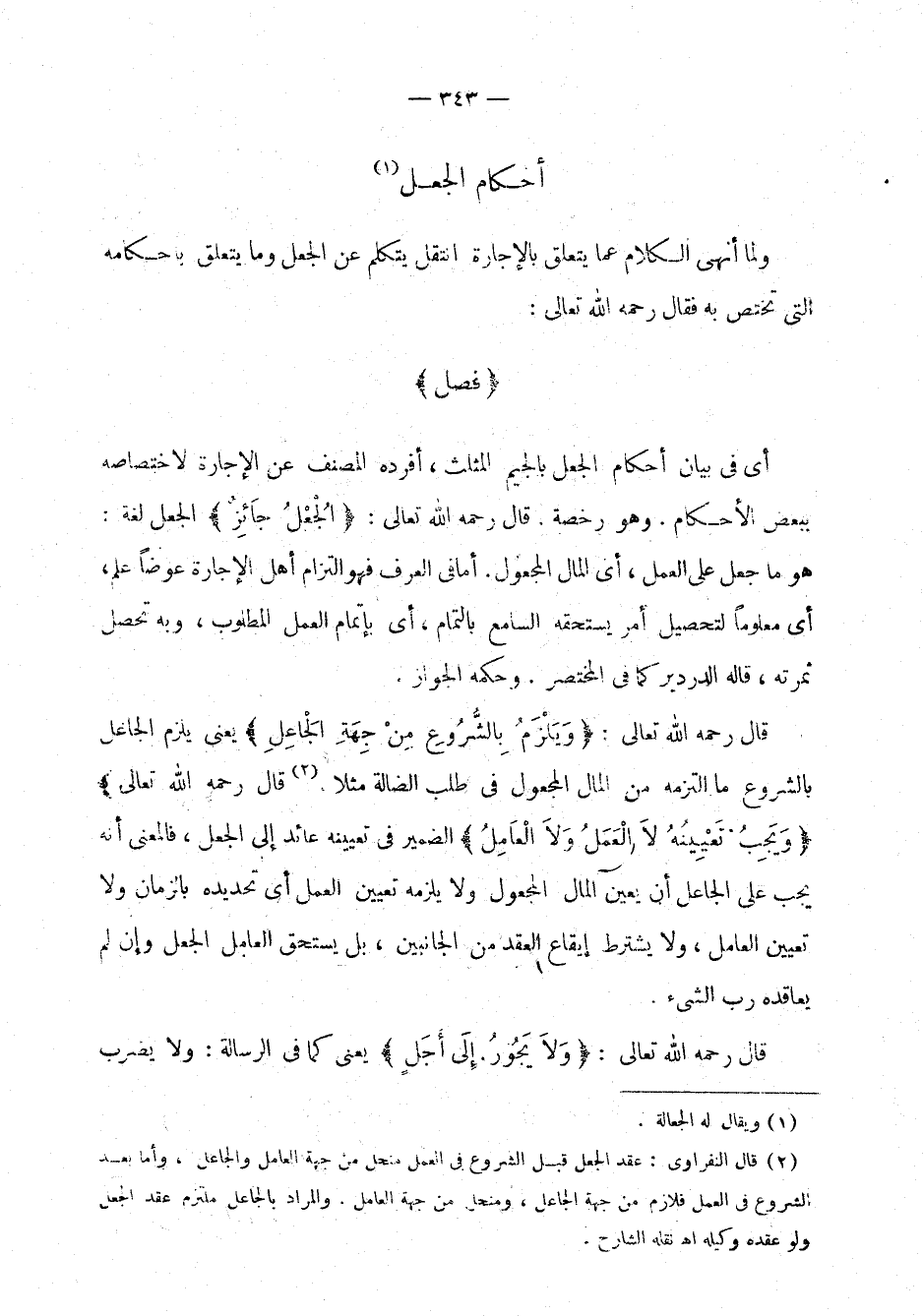 ولما أنهى الكلام على ما يتعلق بالإجارة انتقل يتكلم على الجعل وما يتعلق بأحكامه التي تختص به فقال رحمه الله تعالى: