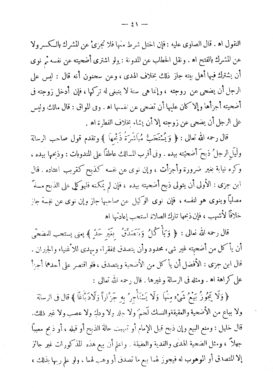 " ولا يجوز بيع شيء ولا يستأجر به جزاراً ولا دباغاً " قال في الرسالة: ولا يباع من الأضحية والعقيقة والنسك لحم ولا جلد ولا ودك ولا عصب ولا غير ذلك. قال خليل: ومنع البيع وإن ذبح قبل الإمام أو تعيبت حالة الذبح أو قبله، أو