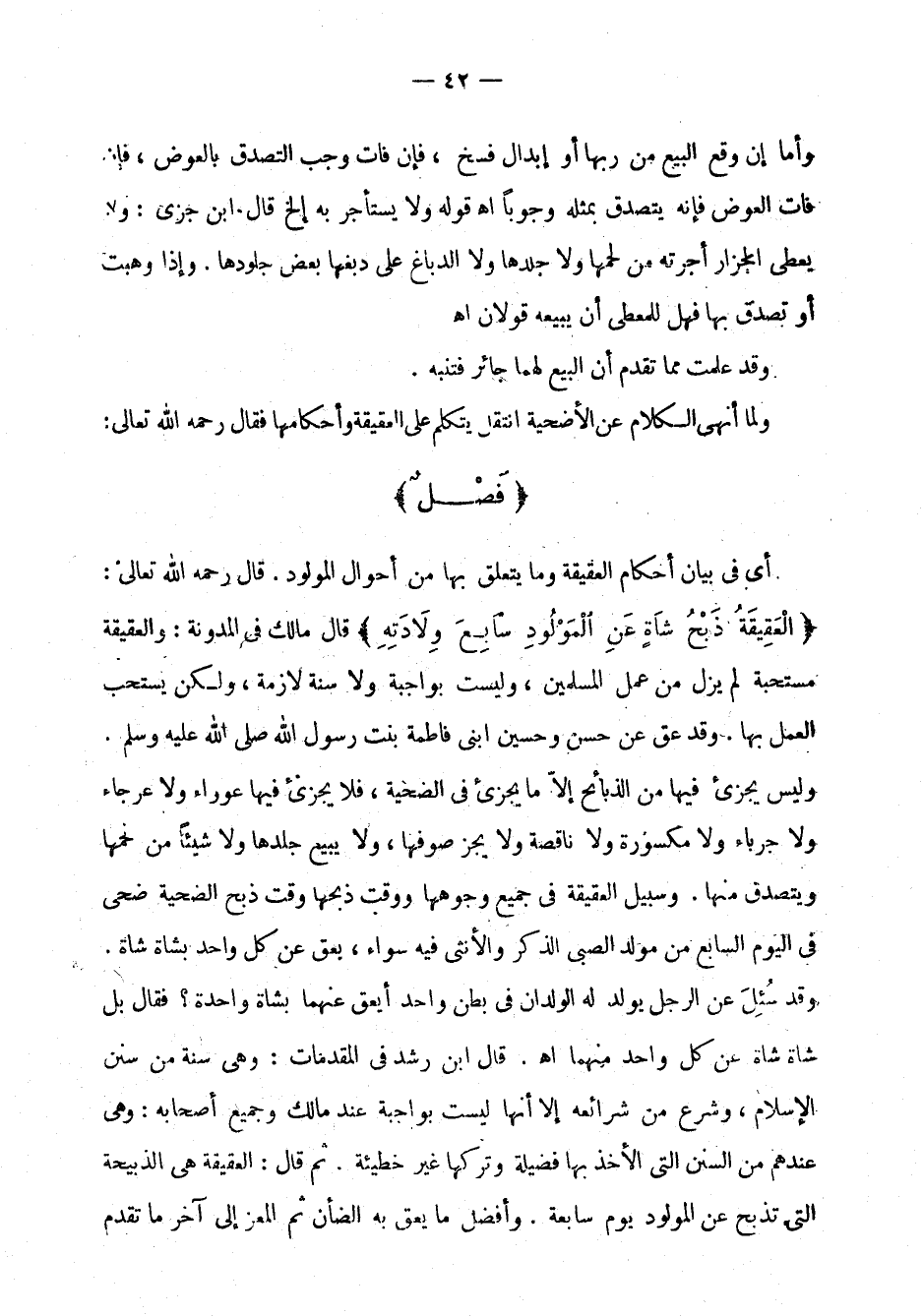 ولما أنهى الكلام على الأضحية انتقل يتكلم على العقيقة وأحكامها فقال رحمه الله تعالى: