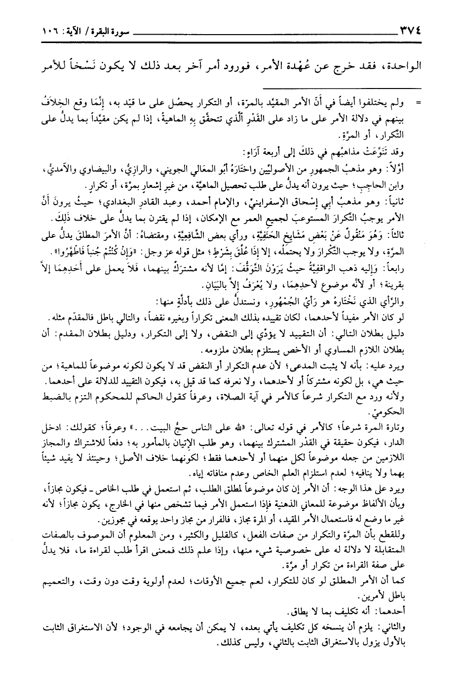 الواحدة، فقد خرج عن عُهْدة الأمر، فورود أمر آخر بعد ذلك لايكون نَسْخاً للأمر